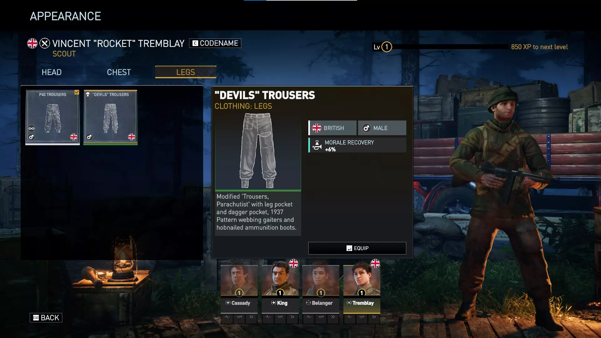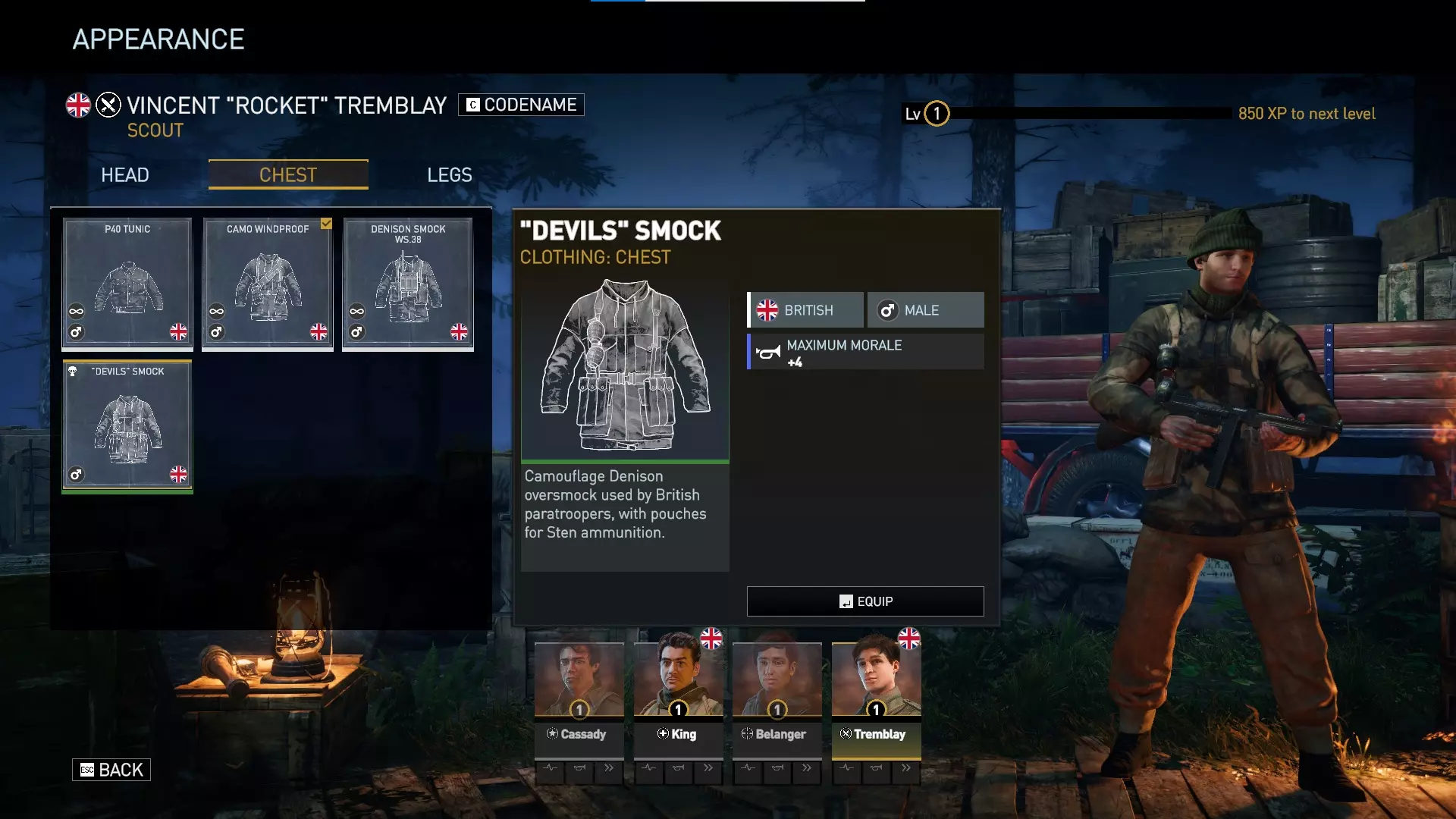 目前这是三款英国男性角色的唯一DLC服装——汤姆(支援兵)、文森特(侦察兵)和奥利(重火力手)。 这三套【恶魔】服装提供+1生命值、+4最大士气值以及+6%士气恢复速度,除了所属国籍不同外,本质上与【利爪】服装如出一辙。额外的生命值和士气值将有助于防止你的角色被击倒或陷入崩溃状态。