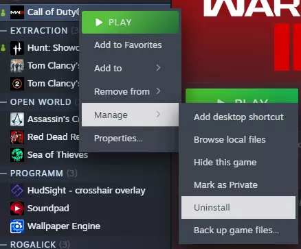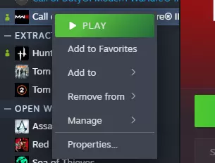 步骤2:右键点击《使命召唤®:现代战争®III》 在你的Steam库中找到《使命召唤®:现代战争®III》并右键点击它。(搜索功能可以让这一步更简单)