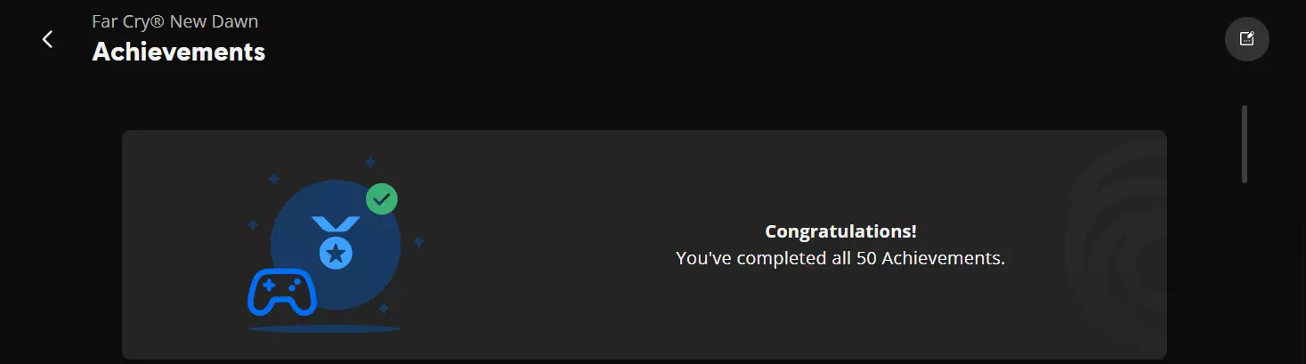 欢迎阅读《孤岛惊魂:新曙光》101%完成度指南。 本指南涵盖了一些可能会给你带来麻烦的成就和游戏内挑战。 开始之前请注意: - 根据个人经验,完成所有内容大约需要45小时。 - 大多数成就和挑战都不言自明,因此我会略过它们(如果你需要任何未提及的成就指南,可以在评论中留言,我会补充)。 - 找一个合作搭档来获取100%成就(比如【Have Buddy, Will Travel】成就),但需要注意,部分成就仅主机玩家可解锁。 现在,让我们开始吧!成就 已知问题: 1) 若以管理员身份启动游戏,可能导致成就无法弹出。解决方法:前往您的安装路径Steam steamapps common Far Cry New Dawn bin,找到.exe文件,进入其属性>兼容性,取消勾选“始终以管理员身份运行”(默认情况下该选项应为未勾选状态)。 2) 成就可能会随机出现故障而无法弹出,目前尚未找到原因,但退出游戏后该问题通常会自行解决。