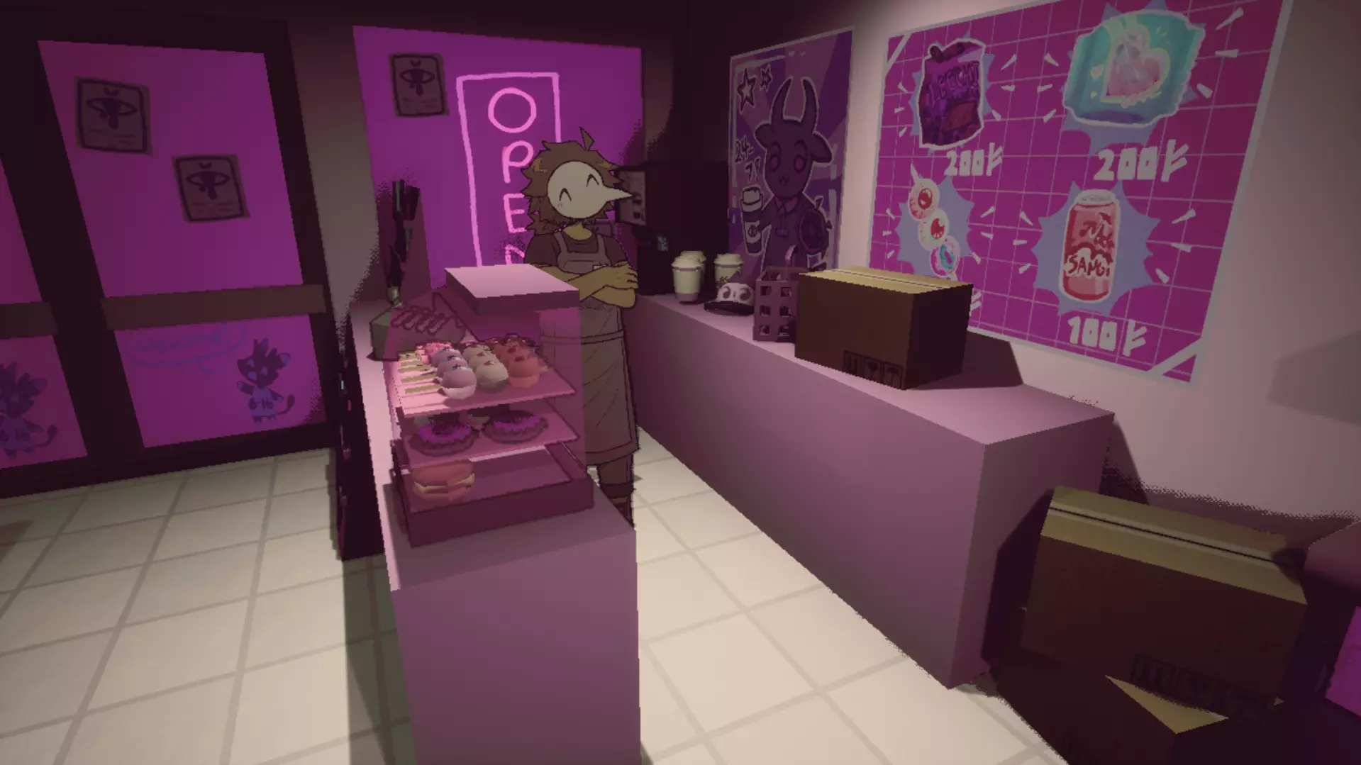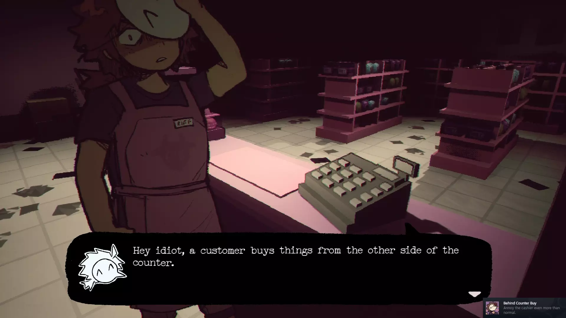 柜台后的男人 在场景一 - 走廊的便利店区域,走到柜台后面和那个男人交谈