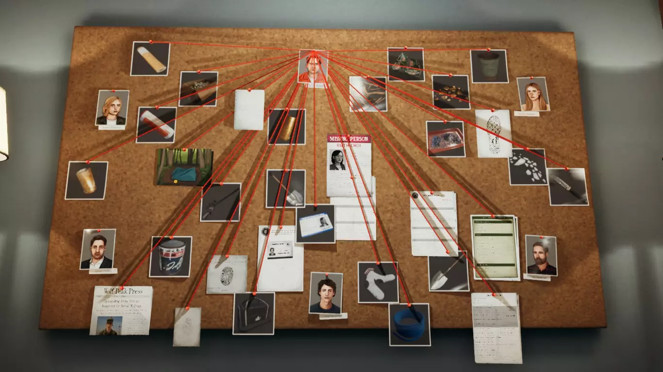 对证据的彻底检查以及针对真凶的案件梳理 简介 在检验多份证据、查看多份文件、在看板上关联多条线索并观看部分访谈后,你将解锁定罪功能。将任何相关信息与你认为的凶手关联,使用出口门并对嫌疑人定罪。若你关联了足够证据,将达成【Guilty】结局;若关联证据过少或不相关,则达成【Not Guilty】结局。所有六名嫌疑人都可被成功定罪,但只有一人是真凶。 在本指南的前几部分,我会列出证据、文件、检测结果以及从访谈中获取的案件笔记清单。接下来,我会提出能给六名嫌疑人定罪的论点,并针对真凶提出最后一个论点。需要提醒的是,我会故意为五名无辜嫌疑人进行明知是错误的辩护。如果你发现论点中有漏洞,那就说明你找对了方向。 通用提示 某些访谈、证据和文件会在主房间的公告板上添加案件笔记。这些笔记会突出案件的重要方面。如果遇到困难,查看案件笔记,看看是否遗漏了线索。 建议先观看访谈,因为侦探们会对六名嫌疑人都提出指控,并为几份文件/证据提供背景信息。她最后穿着牛仔裤、背心、连帽衫、棒球鞋,戴着她的幸运手链和耳钉。 受害者档案: 案件记录 - 父母的反对与恐慌发作 日常:露丝没有理由深入森林,除非是和埃丽卡或安德鲁一起徒步旅行,但她死前行为异常。 弱点:露丝失踪前偏执、孤僻,且酗酒严重。她缺课或旷工的情况并不少见。 生活方式:露丝的生活风险不高,但她的酗酒和疏离行为使她容易受到伤害。 关联人员:除伊莱贾外的所有嫌疑人、她的父母和姐姐、埃丽卡,以及她的老板帕特里夏·卡迈克尔。露丝与姐姐关系亲密,和父母关系疏远。 犯罪现场:露丝可能只有在有认识的人在场或受到胁迫的情况下才会去那里。如果她的精神状态受到某种影响,在受到惊吓时也有可能前往。几乎没有证据表明其他人与现场有关联,这说明凶手具备法医知识且行事谨慎。露丝可能是被有预谋地针对,也可能是被 opportunist(机会主义者)盯上。 外貌特征:露丝身体健壮但容易被制服。凶手可能是认识她并出于嫉妒而行事的人,也可能是陌生人的 opportunistic(机会主义)袭击。她可能得罪过什么人 性格:她曾受人欢迎且固执己见,但在去世前不久变得易怒且孤僻 前兆事件:露丝觉得自己被人监视,曾在五月份经历过一次恐慌发作,需要服用抗焦虑药物。她存在睡眠问题和幻觉现象。埃丽卡声称,她家门外有一辆她不认识的车在监视他们 照片板 安德鲁和马尔科姆的照片:年轻的马尔科姆和安德鲁带着两支步枪和一只棕色拉布拉多犬打猎 马尔科姆和路易:马尔科姆与一只巧克力色拉布拉多犬合影 路易的照片:一只巧克力色拉布拉多犬的照片 熊的照片:一只名叫熊的德国牧羊犬 埃丽卡和露丝的照片 杰西卡和托德:案件记录 - 爱情的青春梦想 7月4日派对照片和 Charm 手链照片:对底片进行化学测试。案件记录 - 篝火旁和 Charm 手链。 威廉·詹金的电话记录:案件记录 - 报到和私人电话。这记录了7月3日打给詹金办公室的电话。其中大部分是大学工作电话。12点47分,他拨打了妻子的花店和家里的电话。5点24分接到一个来自市中心的电话。6点30分接到一个来自詹金斯家的电话。 五金店收据 - 来自威廉的车:案件记录 - 五金店购买物品。6月18日,威廉·詹金斯购买了一把长柄圆头铲、一根聚丙烯绳子、一块防水布、螺丝和手套。 大学监控录像:案件记录 - 监控录像。两张照片:第一张是露丝的车(车牌号S7 03228),第二张(车牌号S7 92586)。照片日期为91年7月4日,均拍摄于中午左右。 车辆信息板 马尔科姆、安德鲁、杰西卡/托德、威廉和露丝的车辆记录。所有这些都包含车辆的描述、照片、里程数和车牌号信息。 马尔科姆的卡车仪表盘:新案件笔记 - 卡车仪表盘。记录里程为184285英里。 卡车日志:案件笔记 - 卡车日志。马尔科姆在7月3日、7月4日和7月5日的行程记录。据称,他于7月5日抵达蒙大拿州,路线是从科罗拉多州到内华达州再到蒙大拿州。 逾期账单:案件笔记 - 逾期账单。马尔科姆家的水费和电费账单。1991年2月和3月的账单已逾期且金额很高,似乎已有数月未支付。 小屋契约:案件笔记 - 小屋契约。马尔科姆于1976年5月14日以一美元的价格从他父亲那里购买了27号狩猎小屋。 投注单:赛马投注。1991年4月3日在怀俄明州的投注和1991年7月4日在蒙大拿州的投注。狩猎季节安排:案件记录 - 猎鹿与从小处着手。包含大型猎物和小型猎物狩猎季节的表格。大型猎物季节为深秋至初冬。小型猎物季节范围稍广,具体取决于动物种类。最广泛的时间范围是夏末至初冬。 伊莱贾·谢泼德的工作ID:新案件记录 - 锤击之家。伊莱贾·谢泼德曾在一家五金店工作。 罪犯档案 - 伊莱贾·谢泼德:新案件记录 - 捡便士者与位置侦察员。伊莱贾有三个动机:1. 利益。他实施抢劫、入室盗窃,盗取受害者所有钱财和贵重物品。2. 性。他长时间劫持受害者,进行性接触,并享受受害者无助的状态。3. 谢泼德以杀人为乐。 他是有组织的。他的谋杀往往发生在意外事件之后,作案时会使用束缚工具,手法有条理且具备法医学知识。他是典型的有组织型杀手,仅带有两个无组织型特征。 莫迪乌斯·奥普内菲:他会侦察废弃场所,如国家公园和空置小屋。他会跟踪受害者,摸清其日常规律,然后将其带到选定地点。他会让受害者活着,实施自己的幻想,直到时间耗尽,随后开枪/