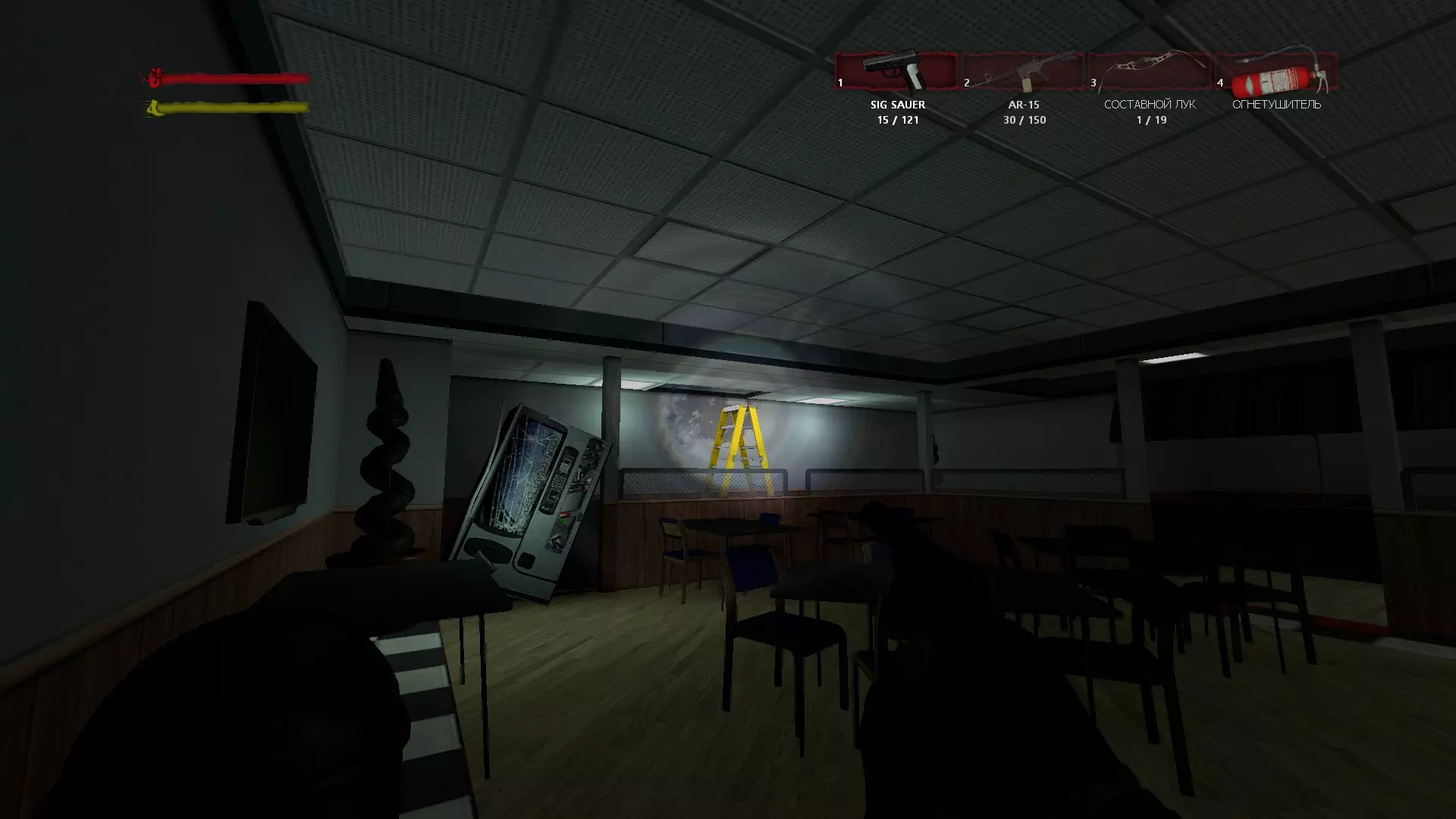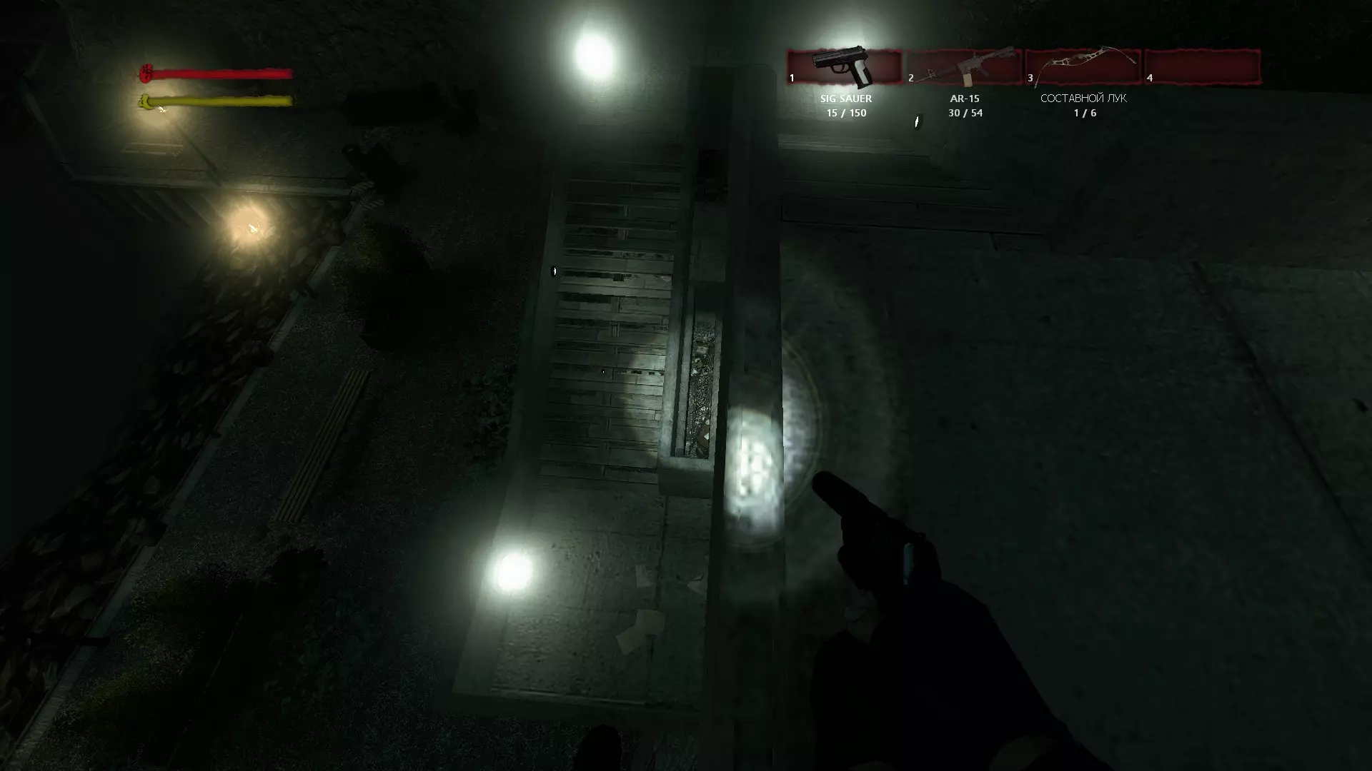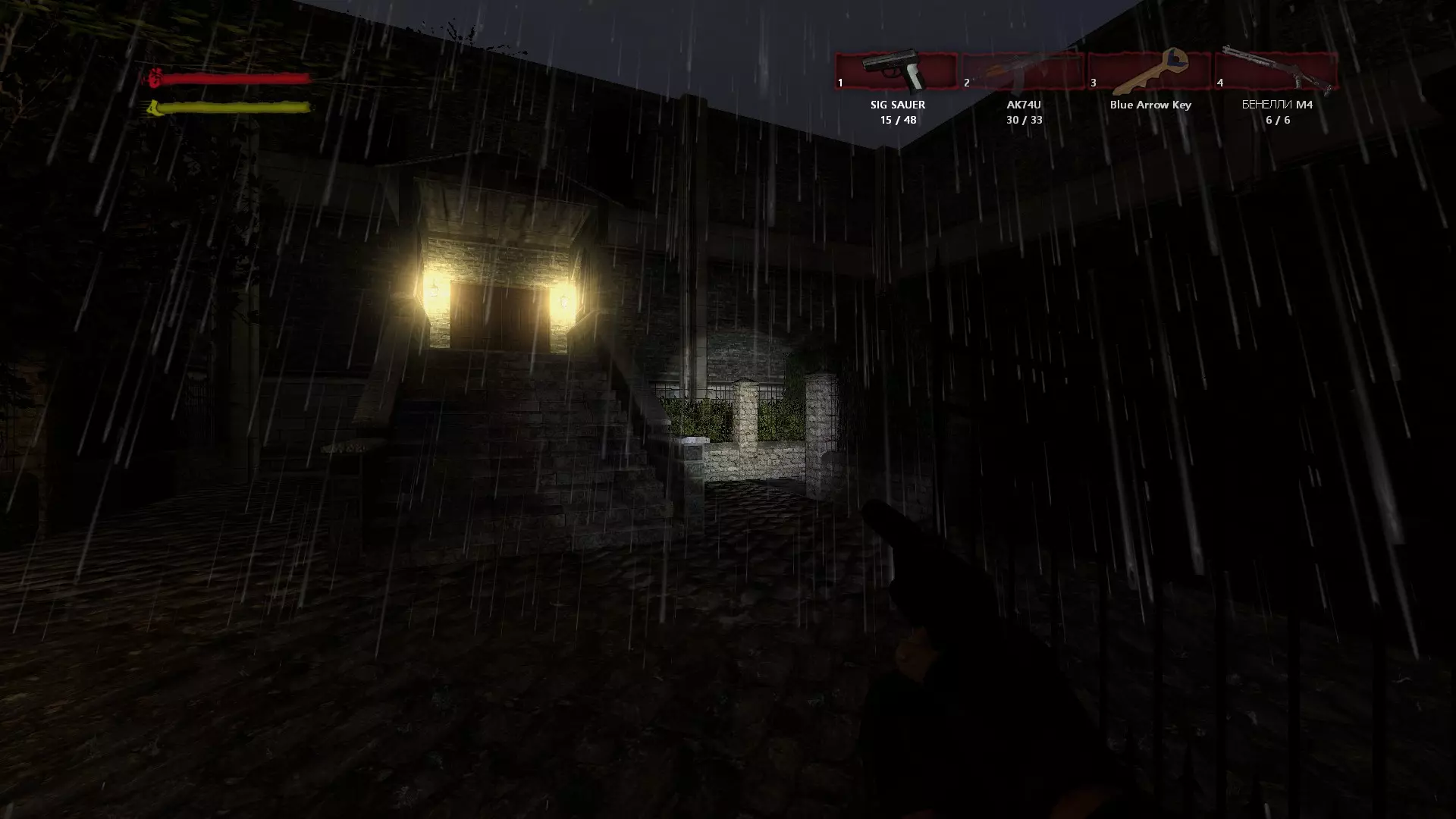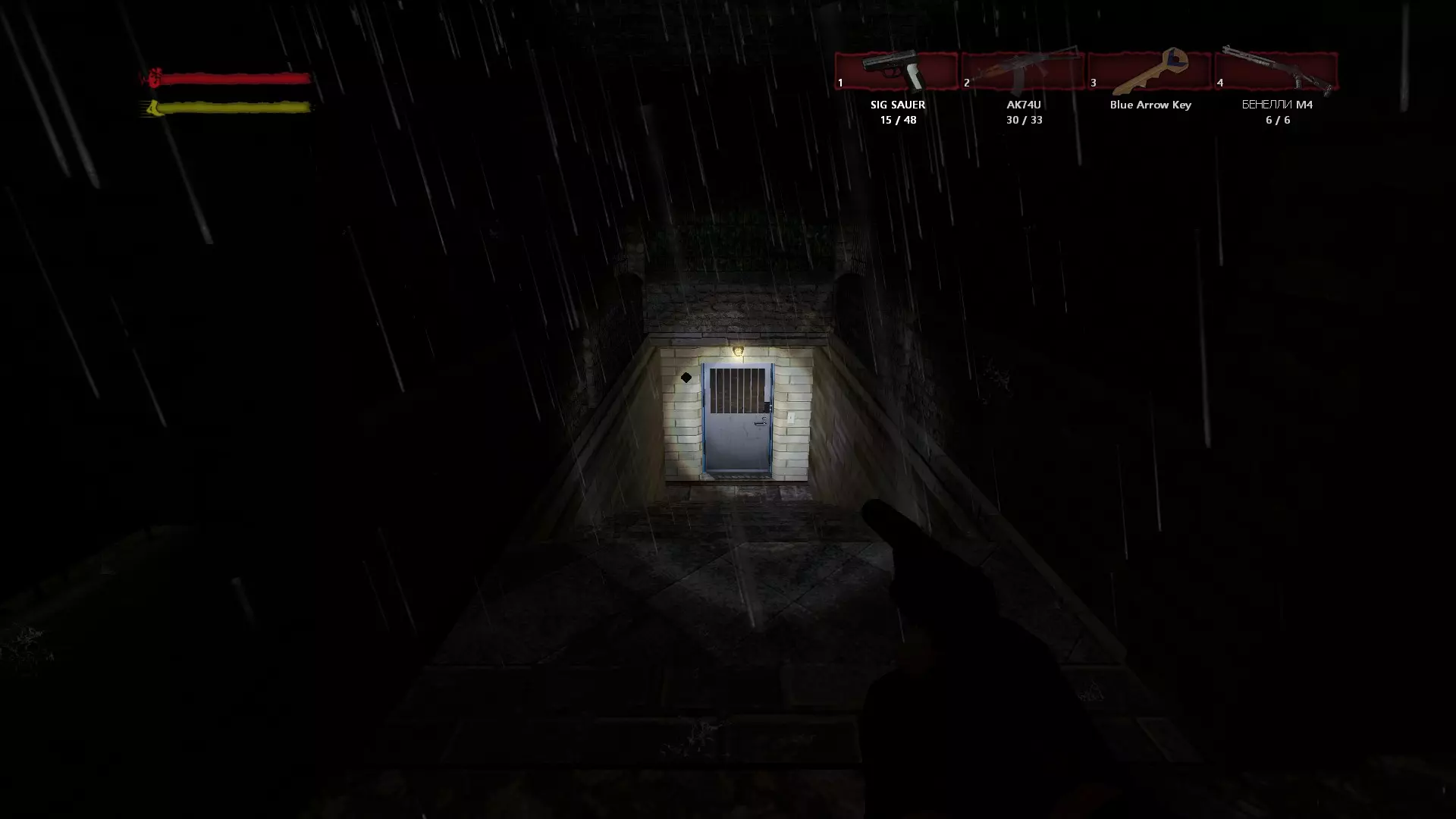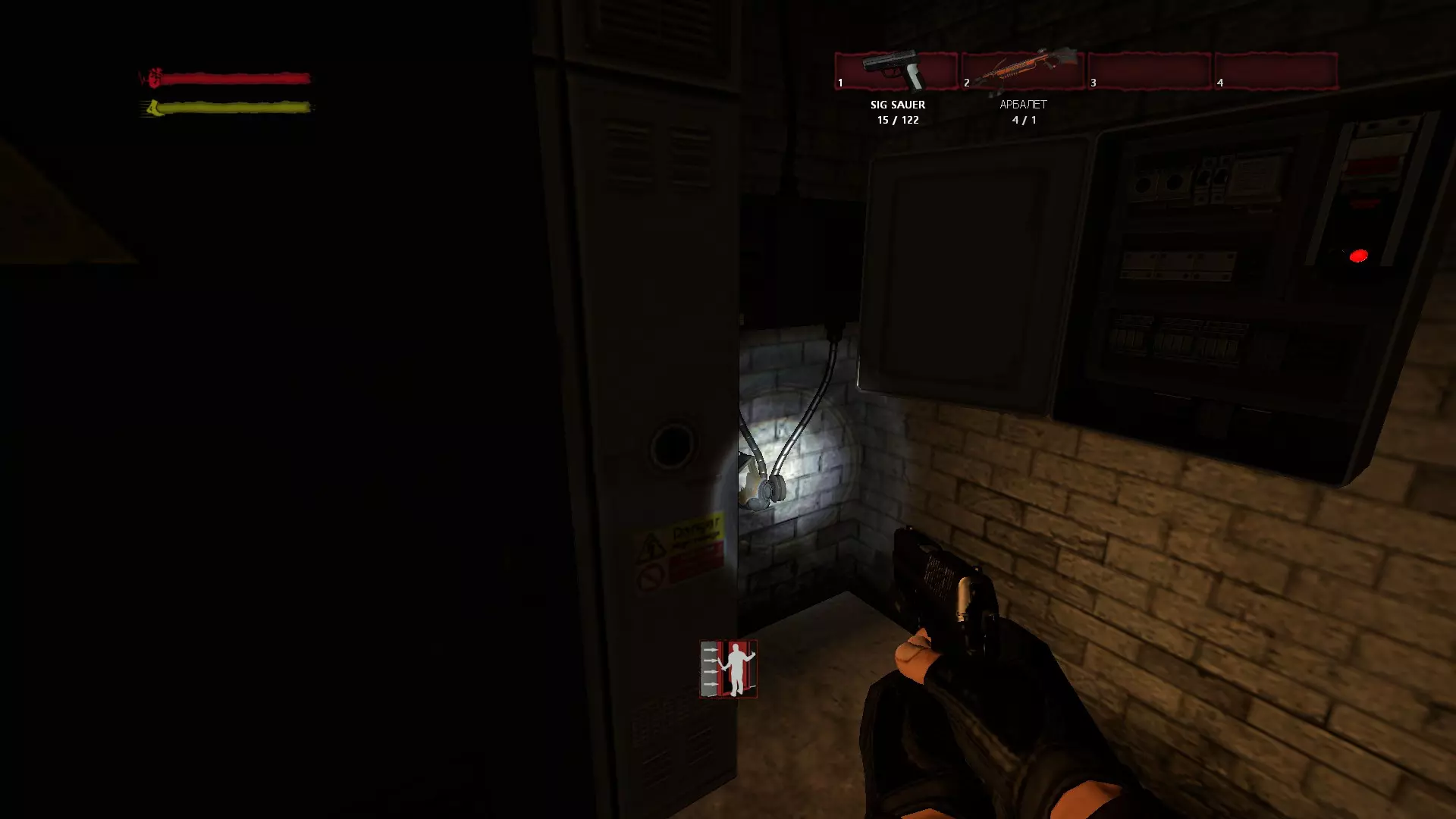 “宅邸”/“Mansion” 在院子里对发电机进行操作并打开带密码锁的小门后,你会来到第二个侧翼建筑前。向右走,会看到向下的楼梯。一直走到酒窖尽头,然后查看电梯下方。