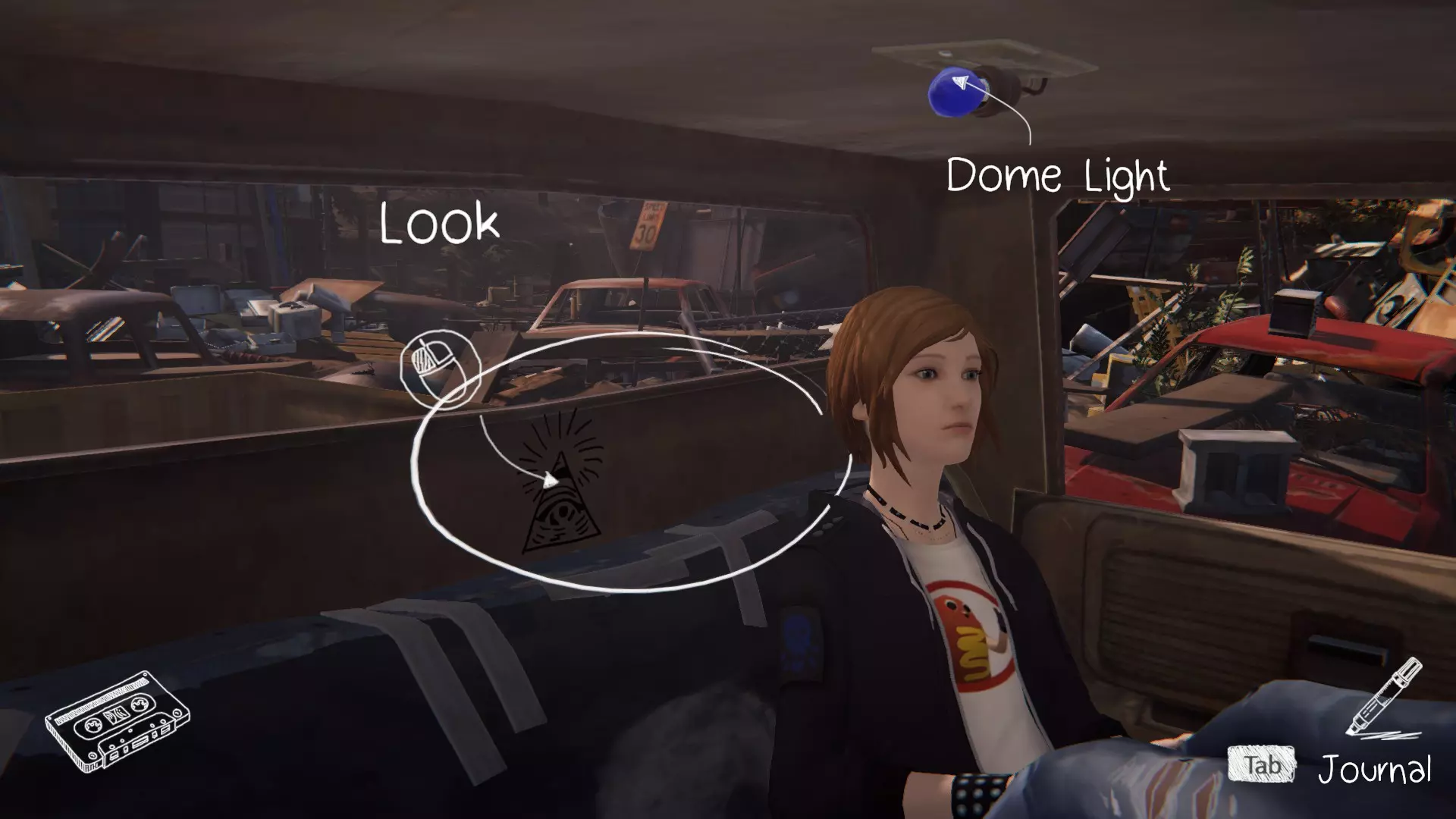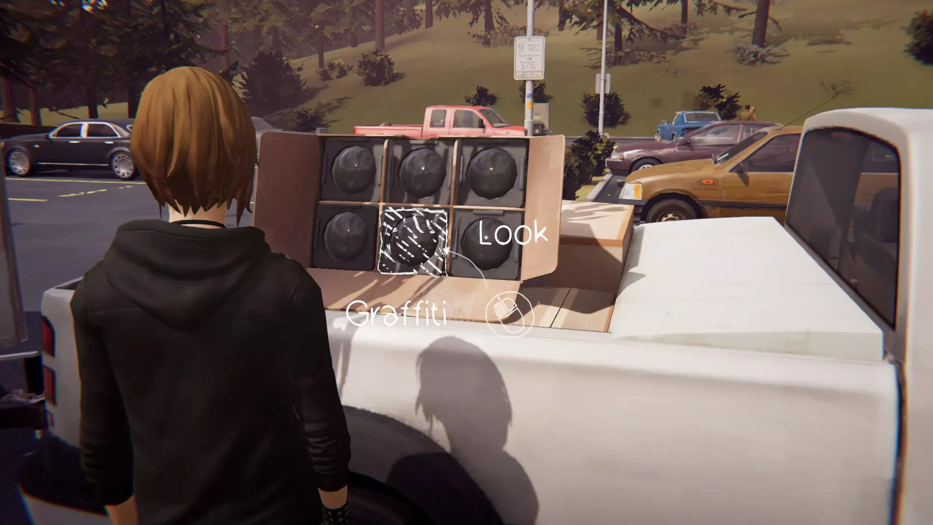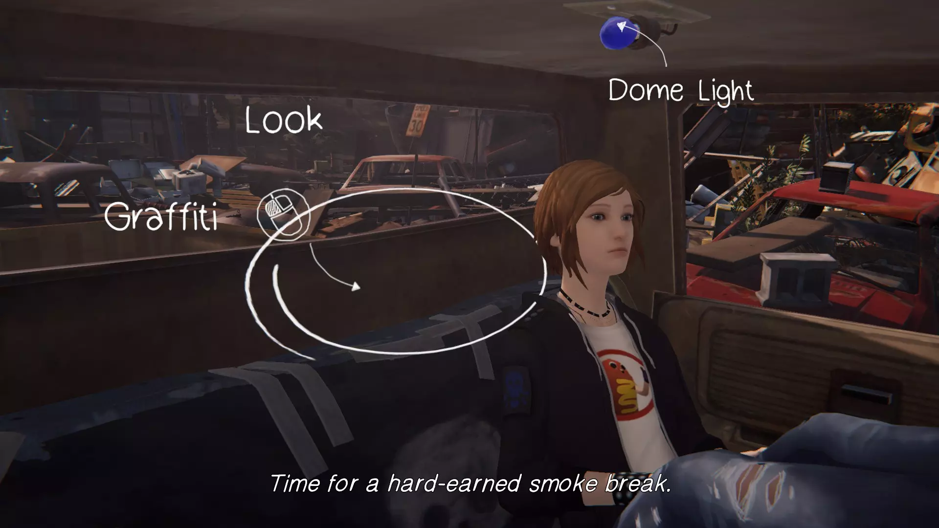 第三个涂鸦点位于克洛伊的车里。在找到所有必要的物品后,就可以进入车内。