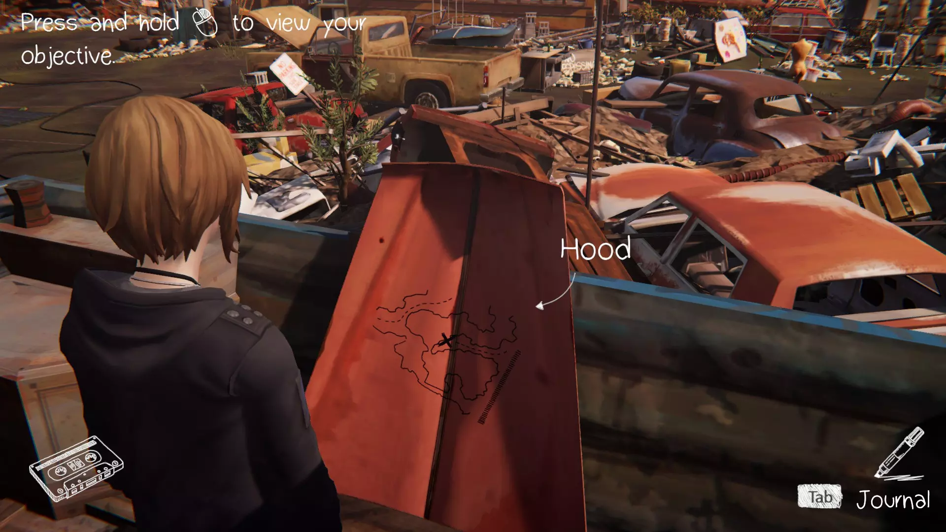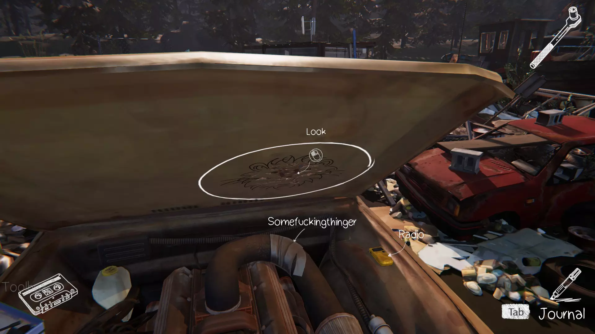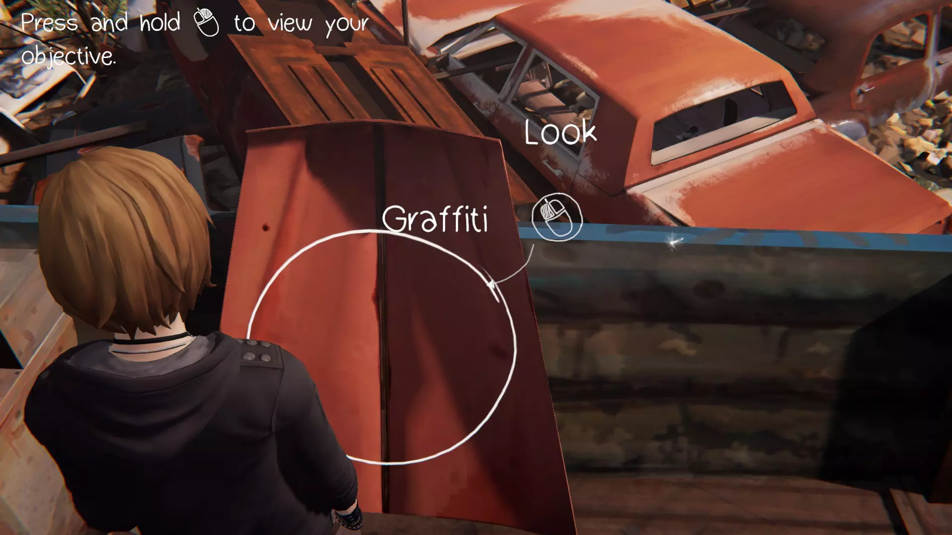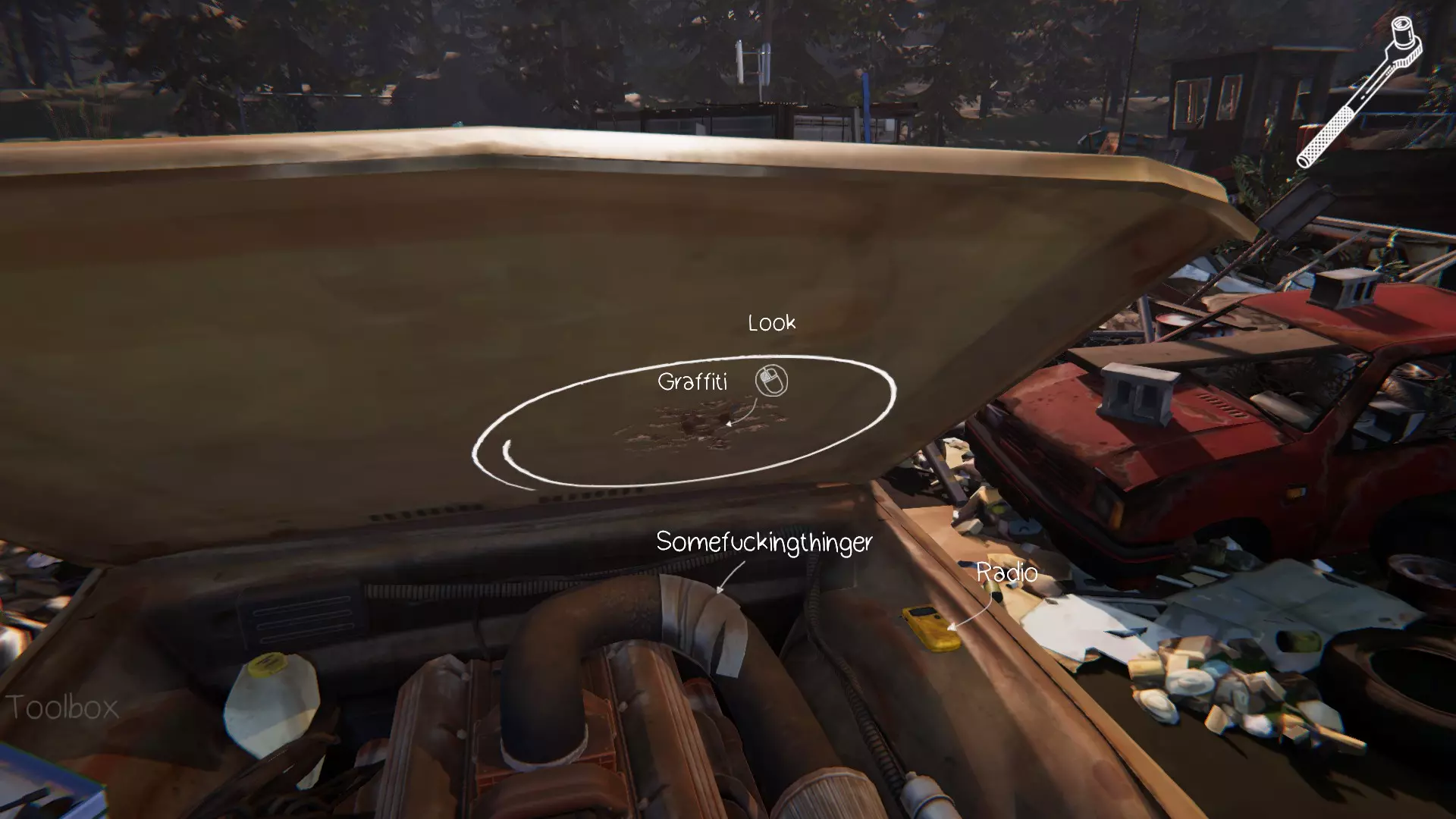 第三个涂鸦点位于克洛伊的车里。在找到所有必要的物品后,就可以进入车内。