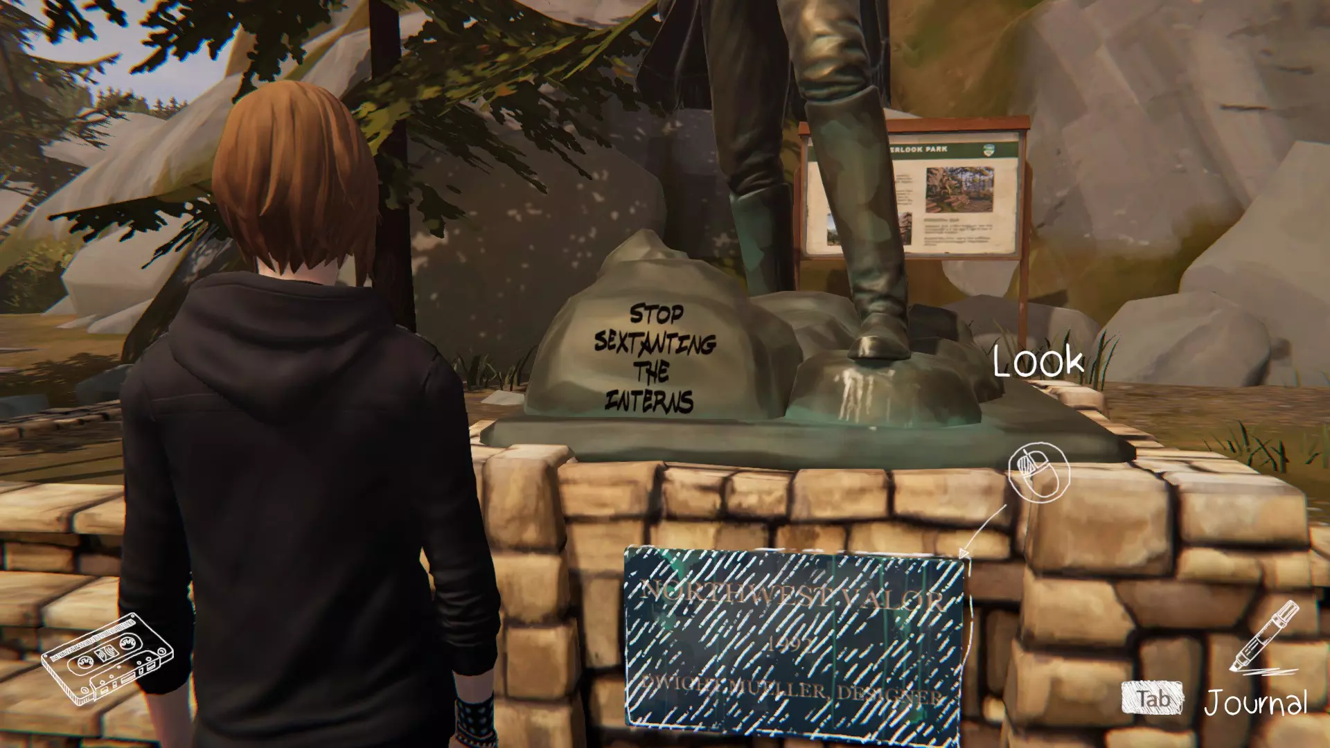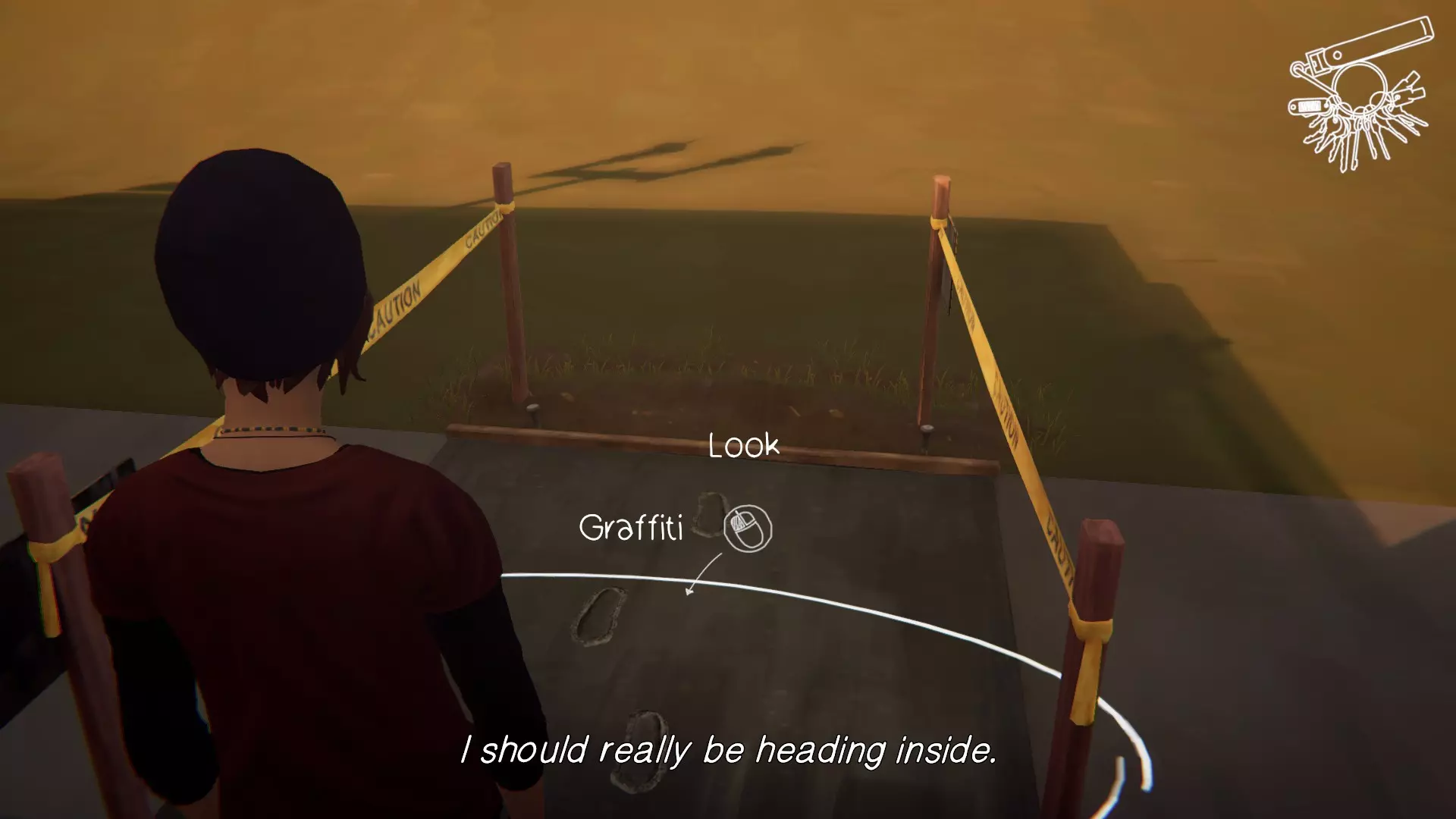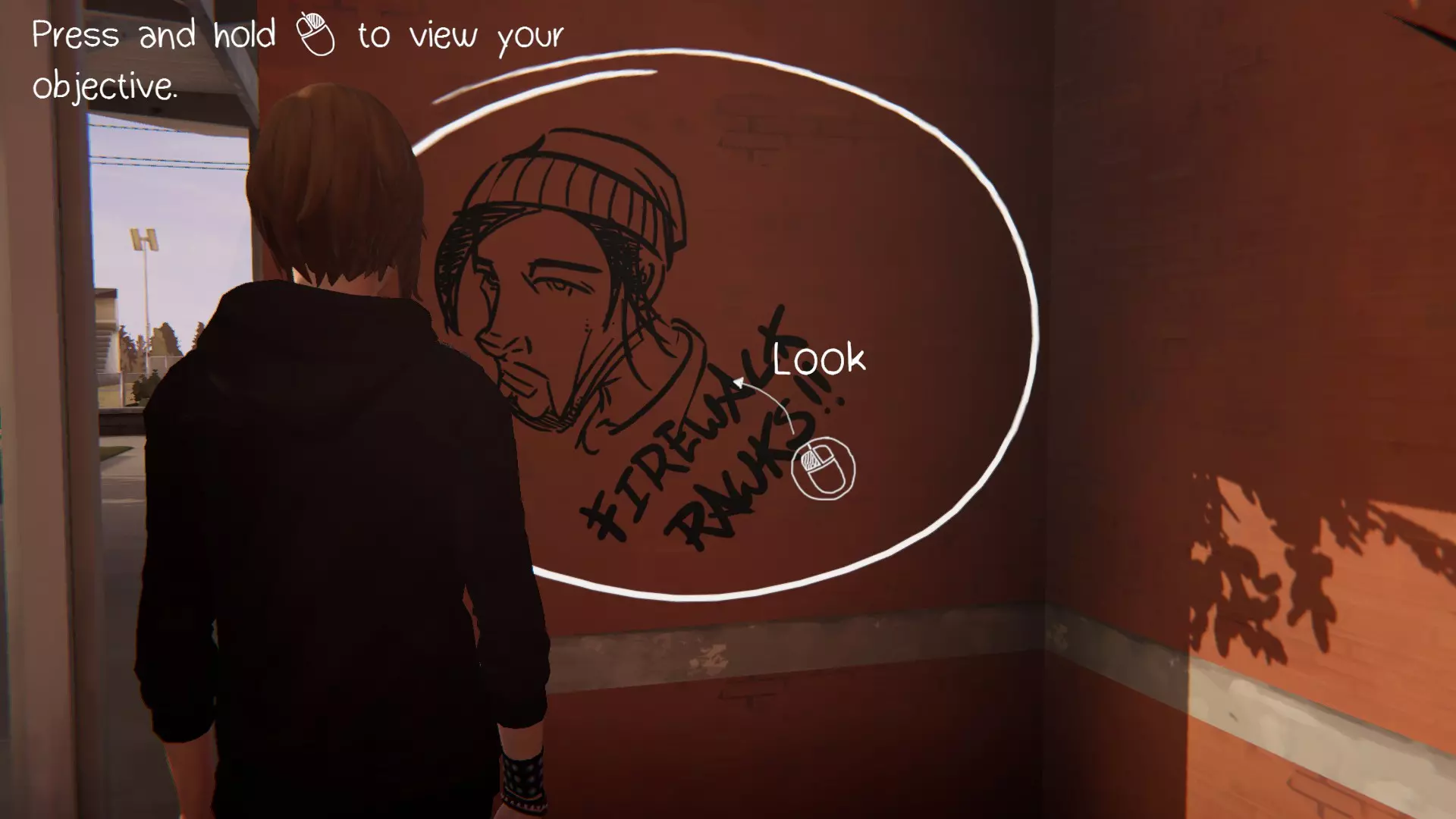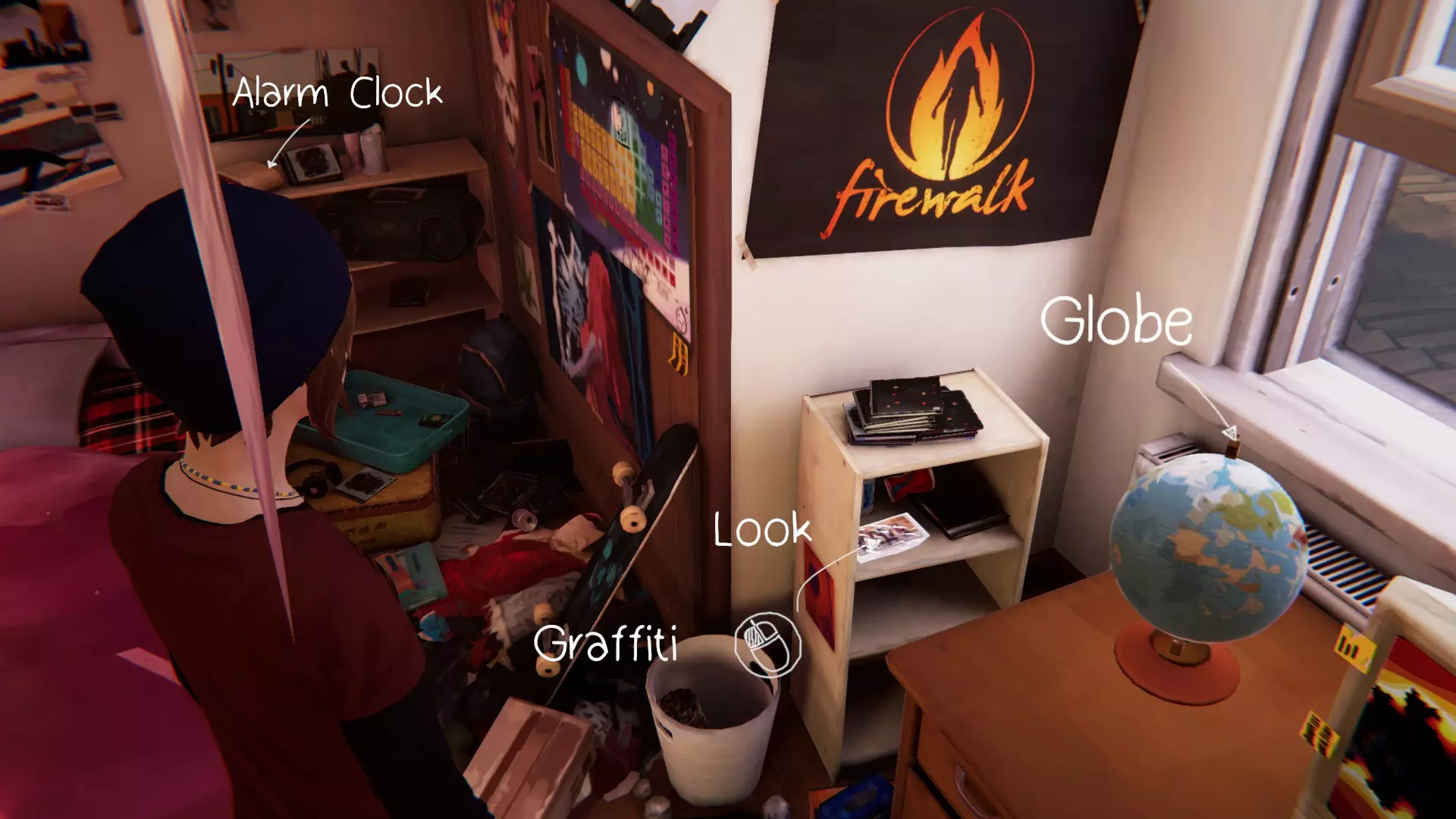 5. 宿舍。[2/2] 第六处涂鸦地点是塞缪尔房间的门。 要在墙上涂鸦,需要“支开”塞缪尔。可以通过先吓走图腾上的鸟,然后弄坏喷雾器来实现,这样埃文就不会妨碍我们了。
