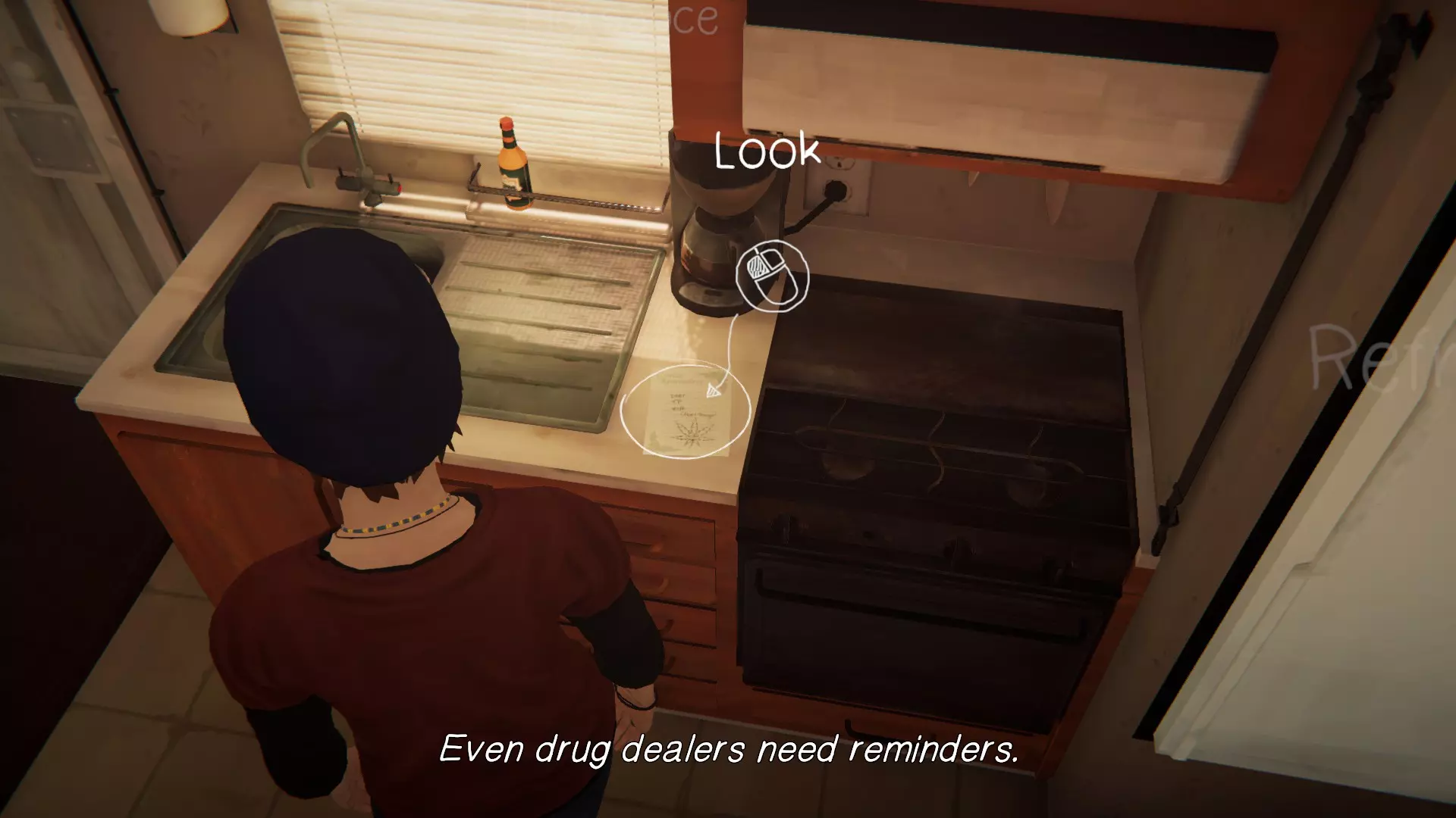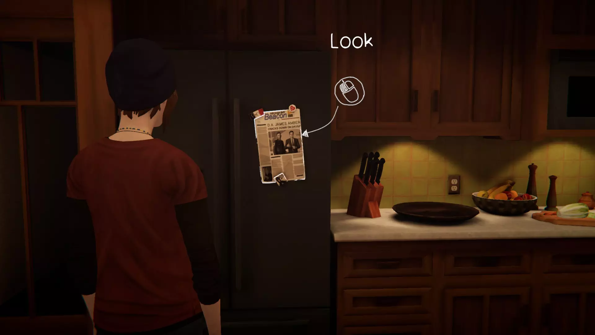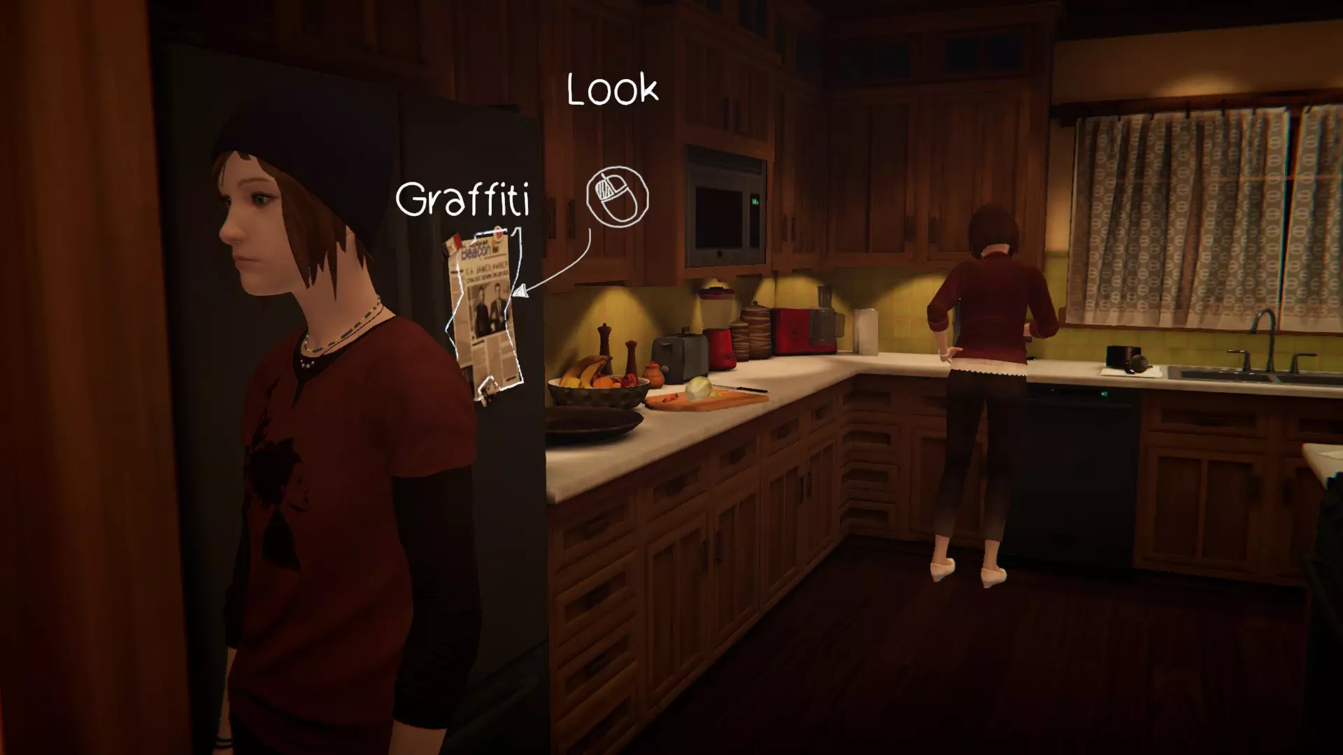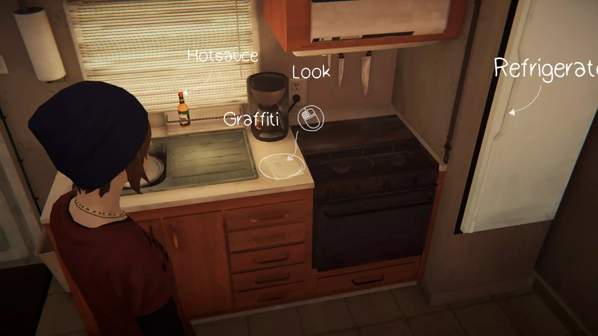 8. 安珀的家。[1/1] 最后一处涂鸦地点——冰箱上的詹姆斯照片。 完成罗兹的所有委托,与她交谈,她就会走到水槽边。 进行涂鸦!