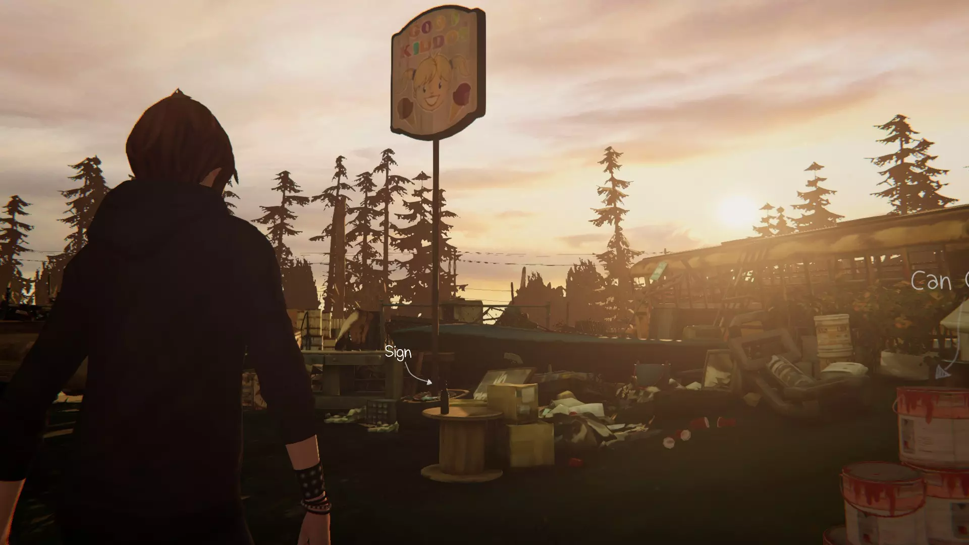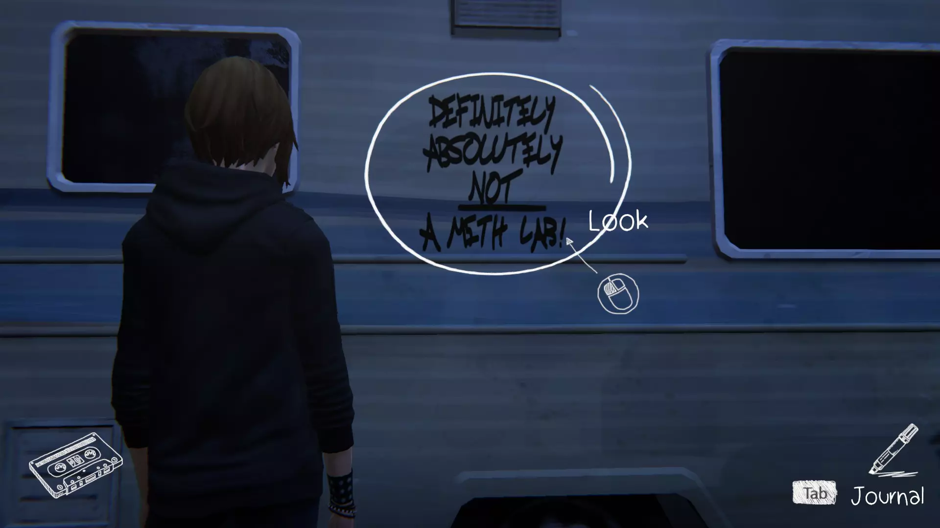 4. 弗兰克的房车。[1/1] 第五处涂鸦地点在桌子上。一旦我们能够操控克洛伊,转身就能看到它就在眼前。 绘制涂鸦。