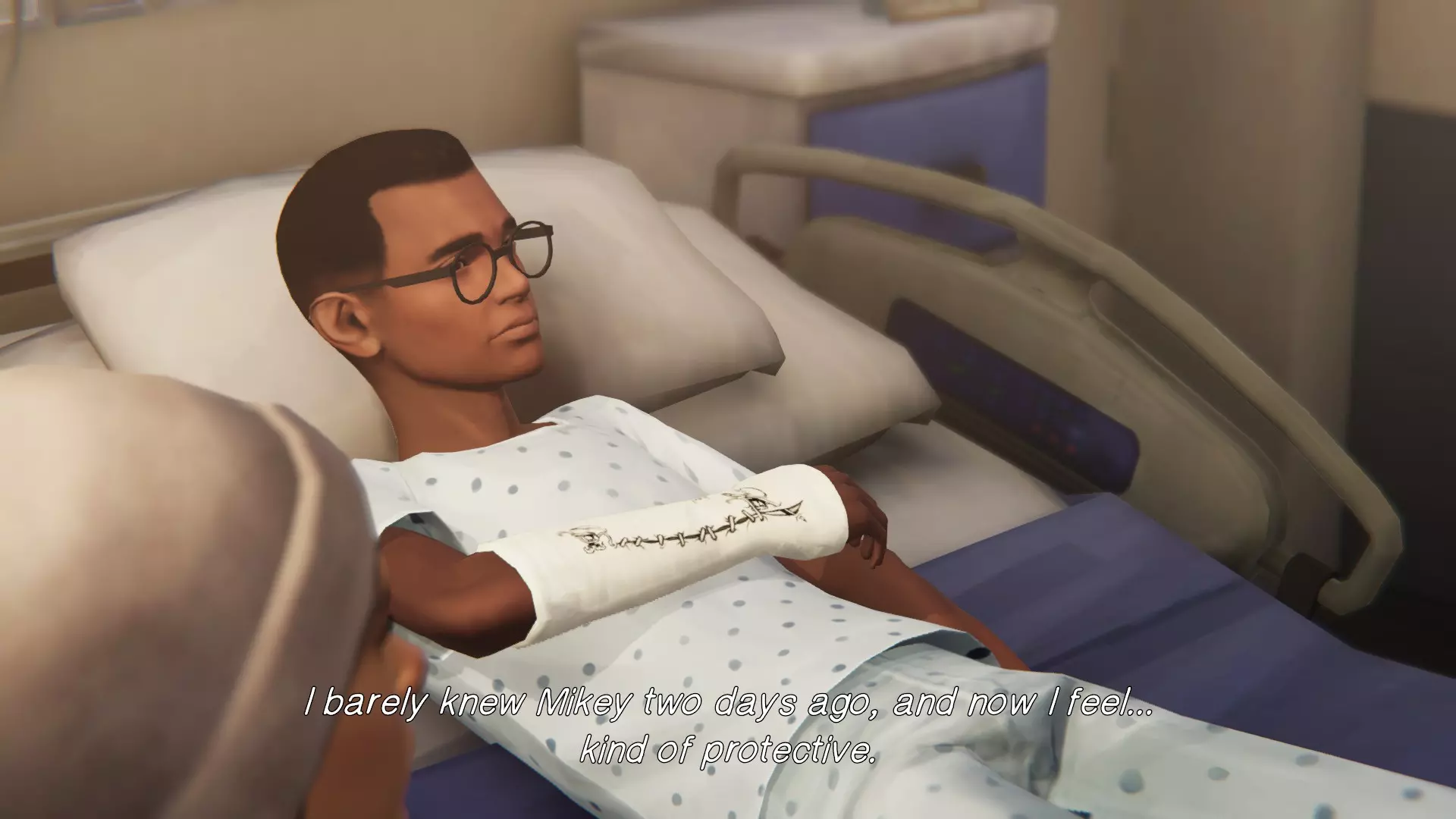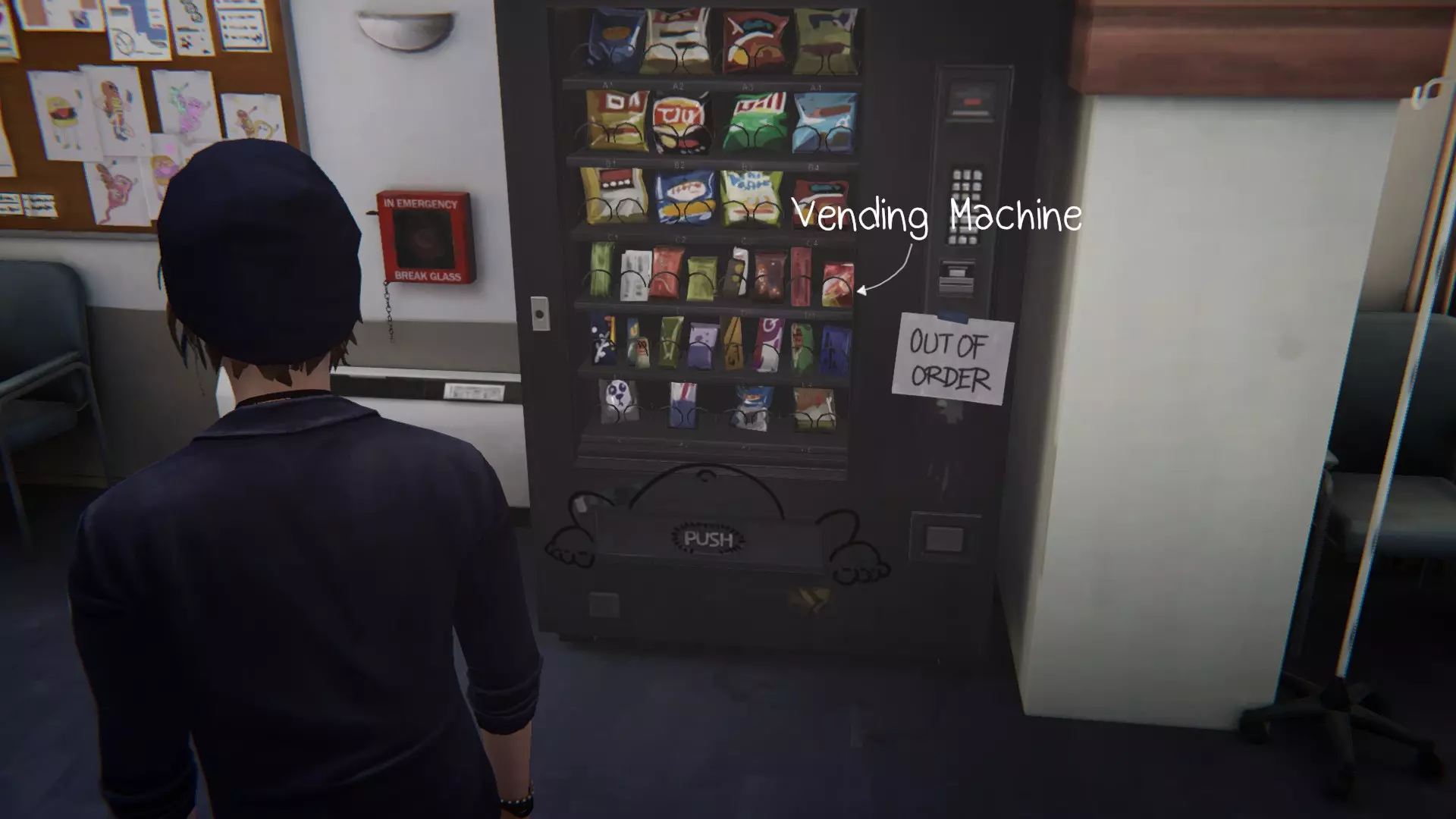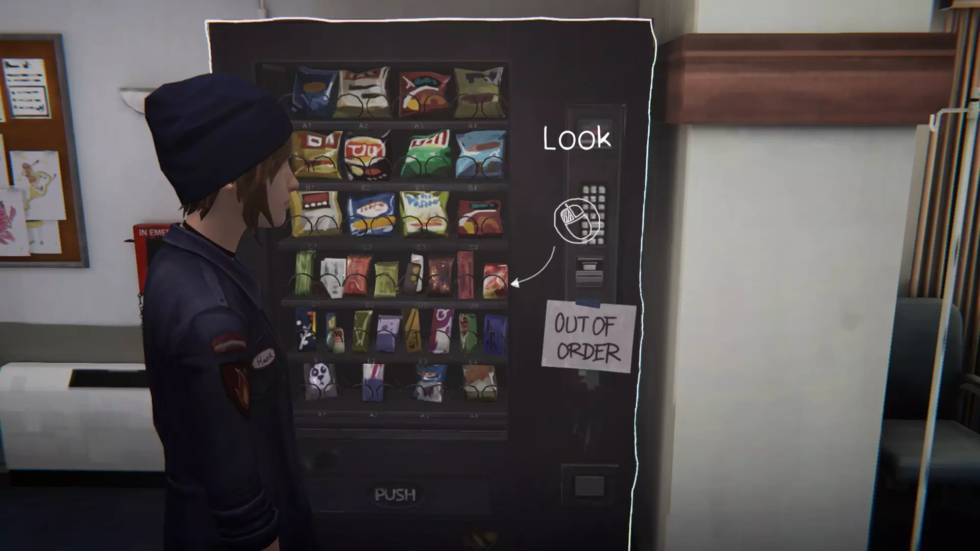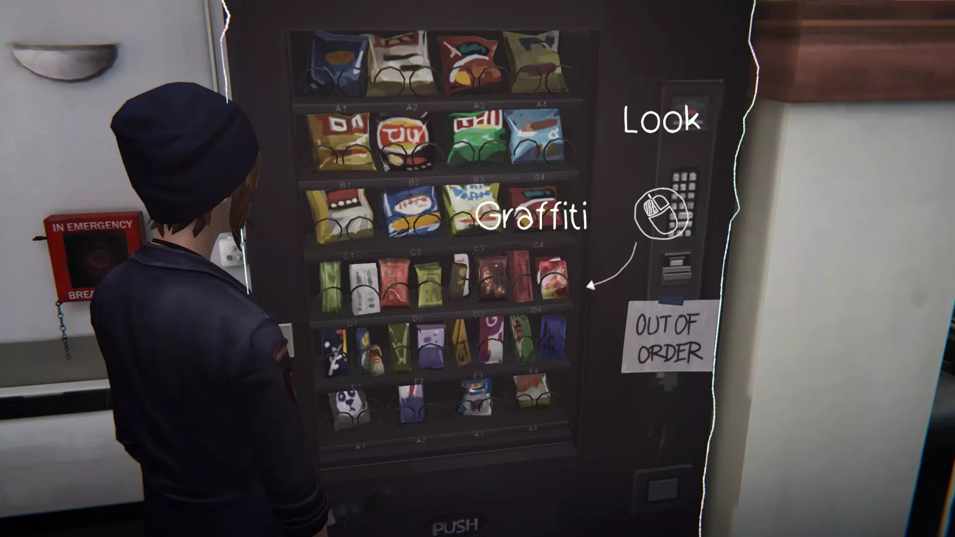 4. 医院。[3/3] 第六处涂鸦地点是自动售货机。 查看自动售货机,然后摇晃它3次。吃掉巧克力。 接着需要返回并遇到在第二章节中见过的那对情侣。 靠近自动售货机并绘制涂鸦。获得成就。
