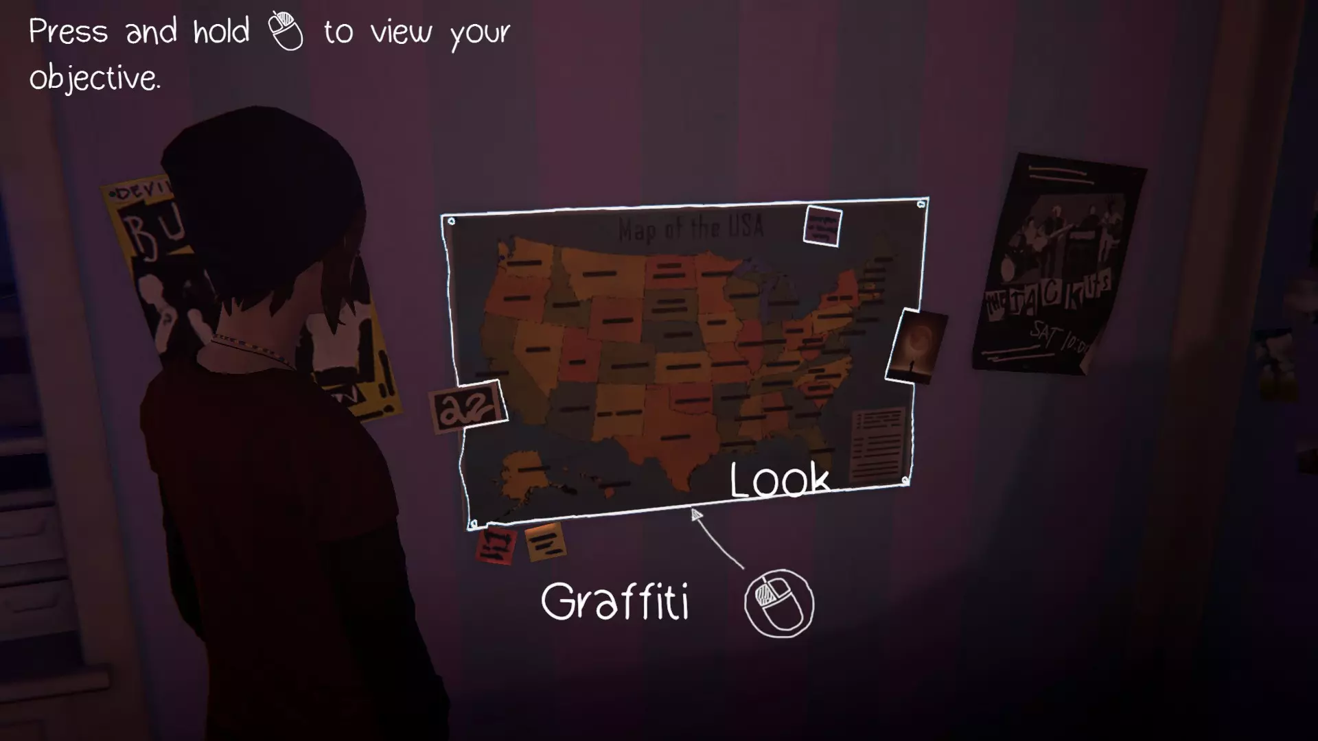 第二个涂鸦地点在瑞秋墙上挂着的美国地图上。在地图上签名,即可获得成就。