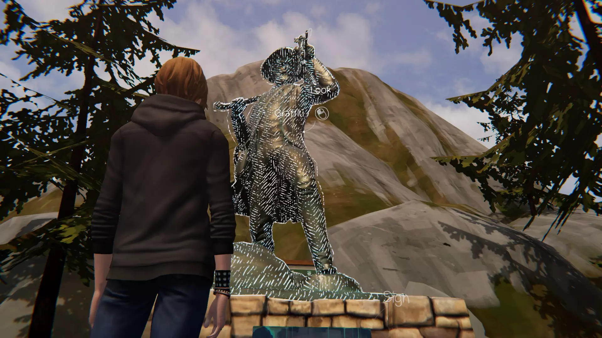 8. 远眺。[1/1] 第八处涂鸦地点在雕像上。 没什么难度。只需绘制涂鸦即可。