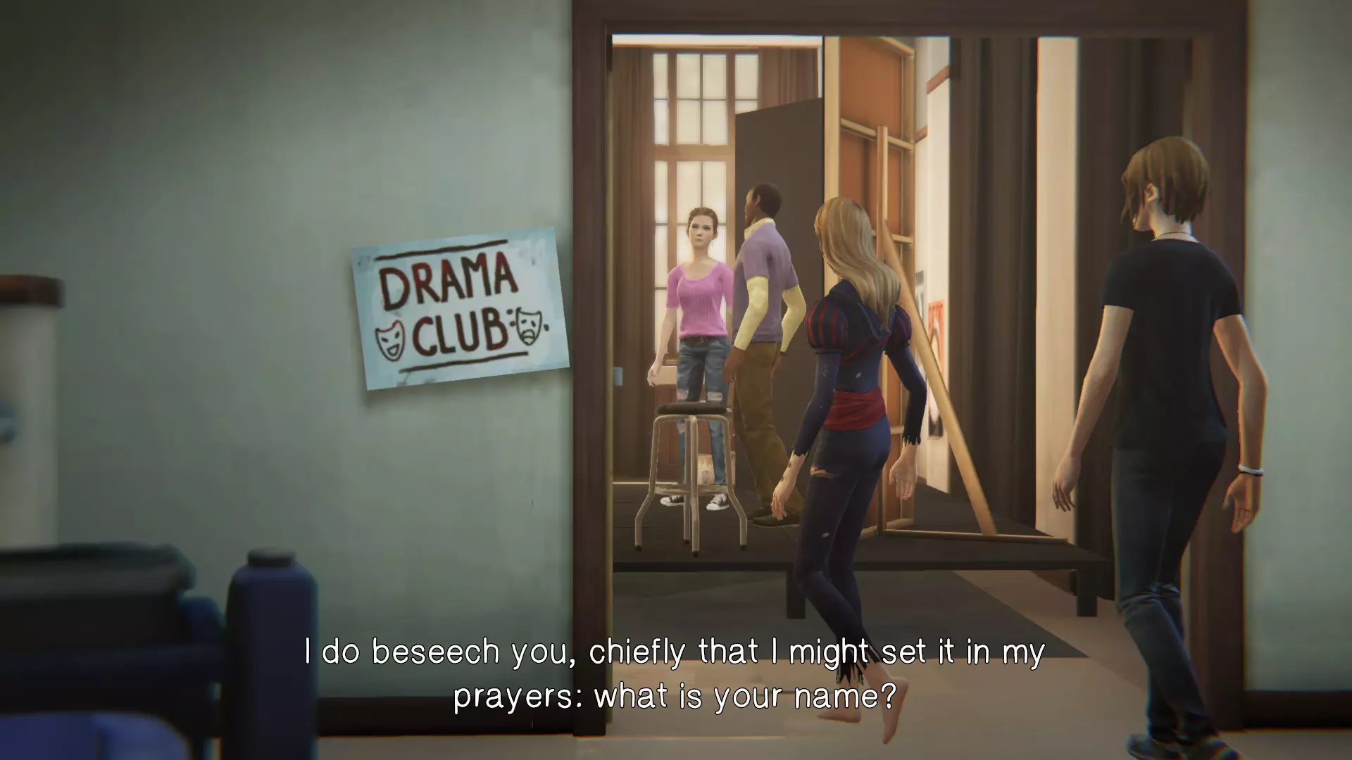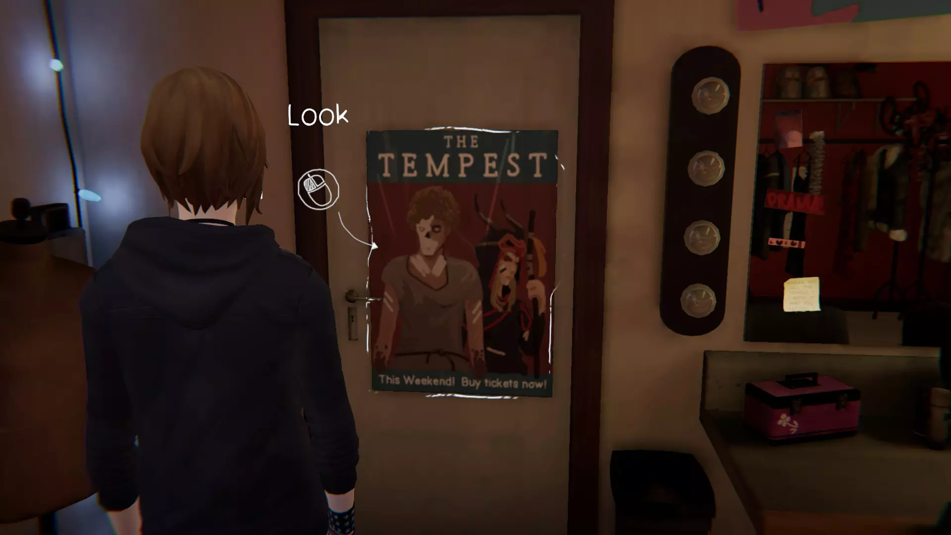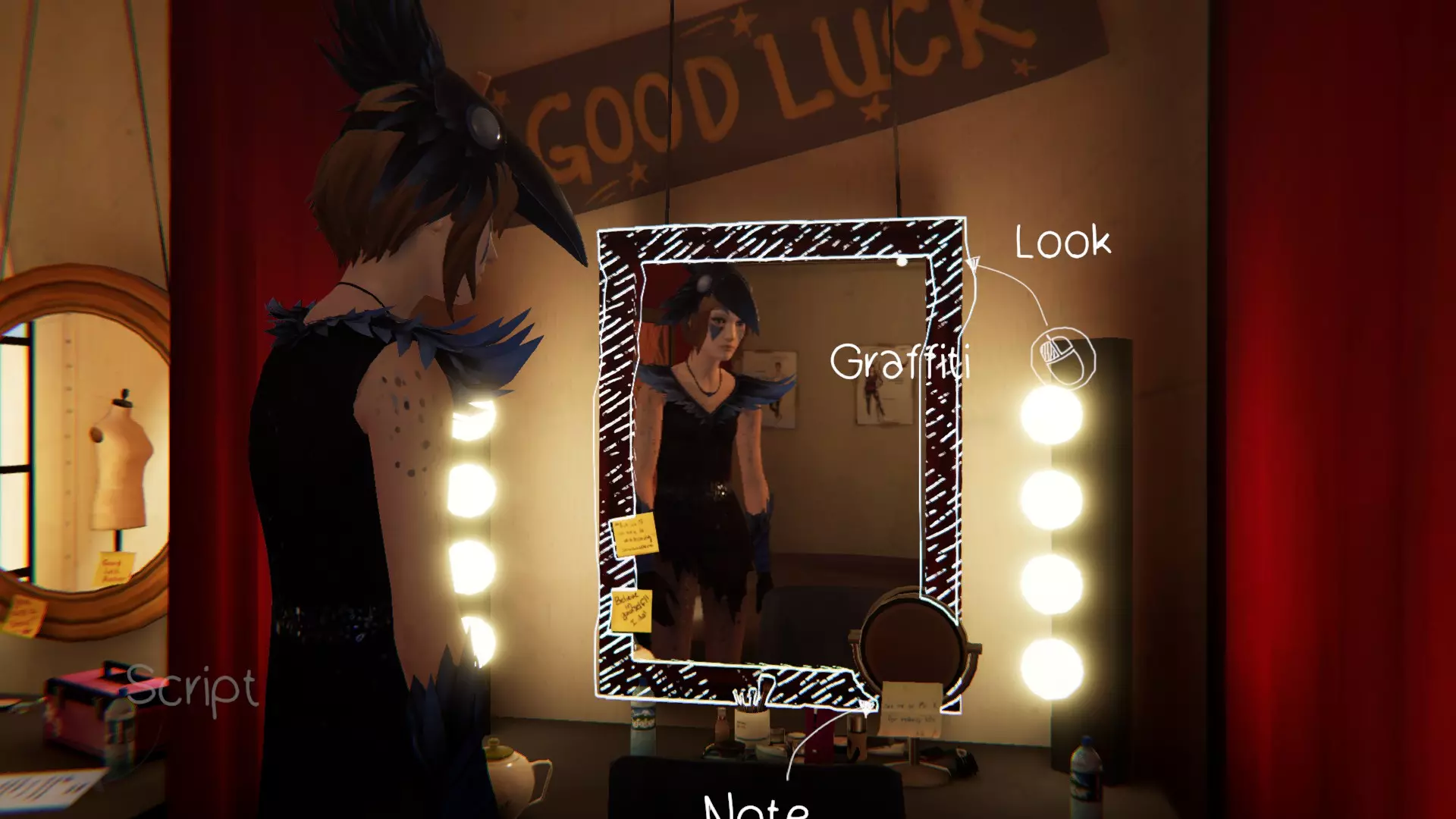 7. 校园 - 后台。[1/1] 第九处涂鸦点 - 换装室里的镜子。 在我们被“拉进”戏剧表演后 - 找到镜子即可获得成就。