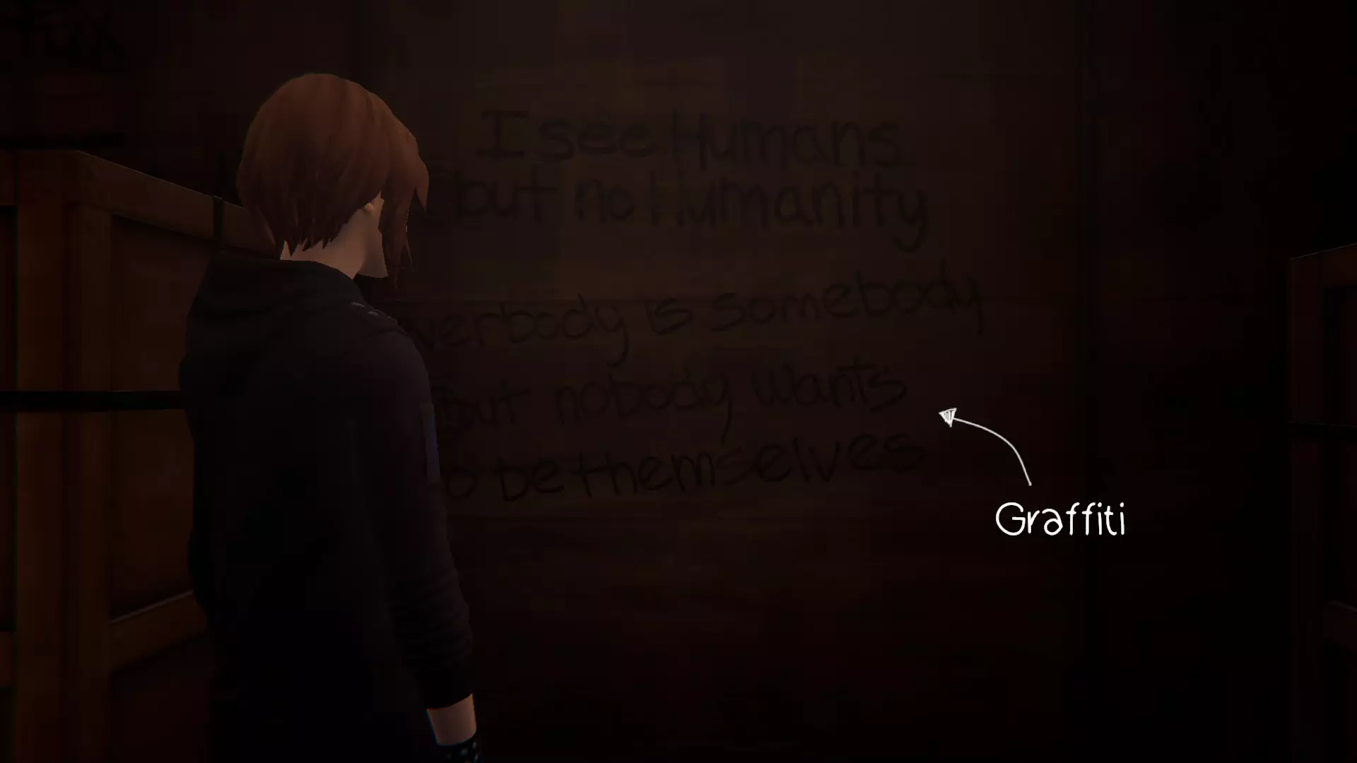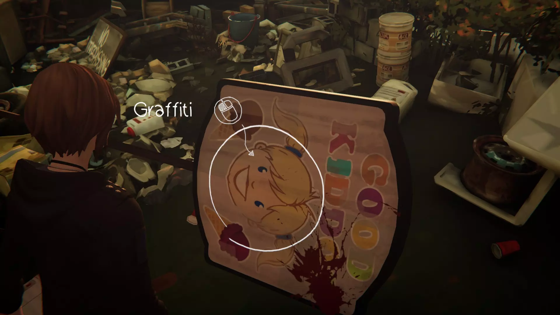 3. 垃圾场 - 后期。[1/1] 4. 第四个涂鸦地点在墙上。当瑞秋留下背包离开后,我们就会进入目标房间。 绘制涂鸦。