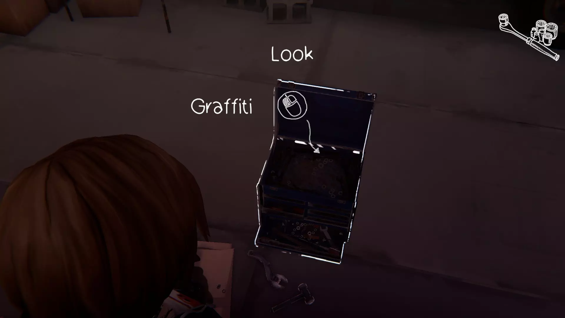4. 普莱斯家 - 楼下。[1/1] 第四个涂鸦地点在车库的工具箱里。 打开箱子,拿出工具进行涂鸦。