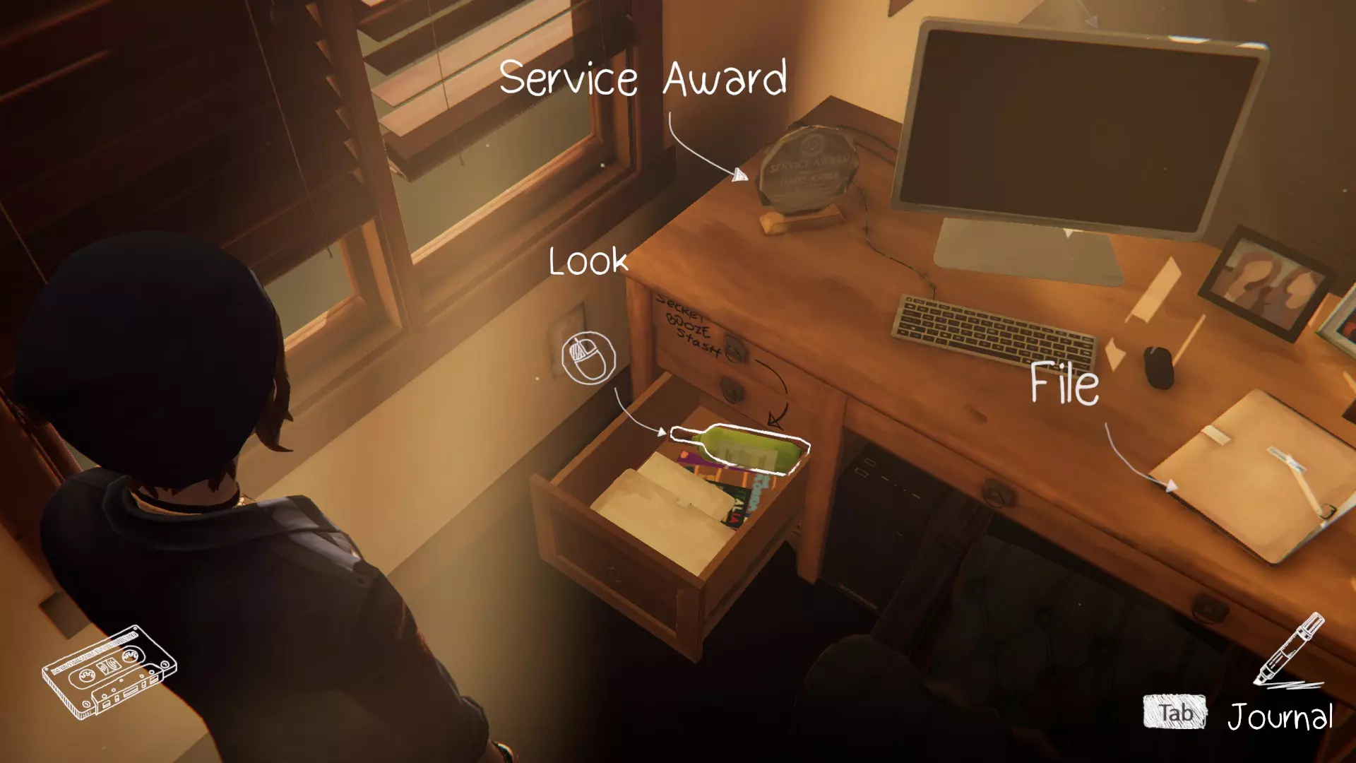 5. 安珀家 - 办公室。[1/1] 第九处涂鸦地点 - 藏有酒精的箱子。 它位于电脑桌的左下角。打开它即可获得成就。