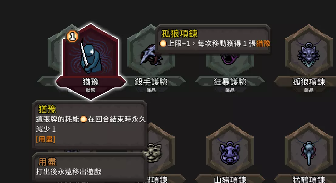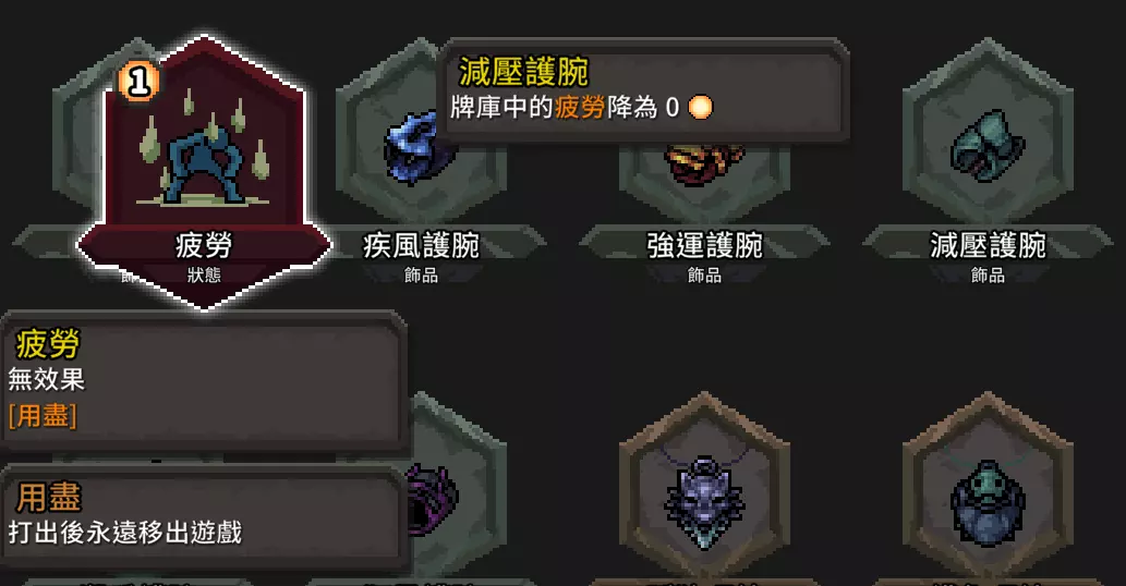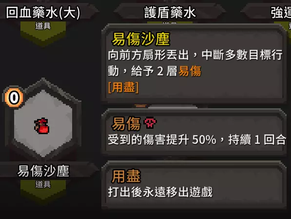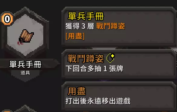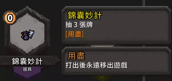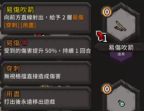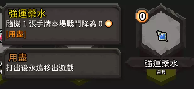 这张提供的增伤非常可观,尤其是在连击数叠起来的时候,效果就像单回合流血。 流派适用武器 这个流派对于武器选择不严格!基本除了远程武器和盾牌尽量不要选以外其他都可以,请各位依自己喜欢的去选。 哈?你想选诅咒武器?你打得赢就选啊。 额外补充 道具篇 道具的话,我们一样以【增伤】【降费】【额外抽牌】来选择 【额外抽牌】
