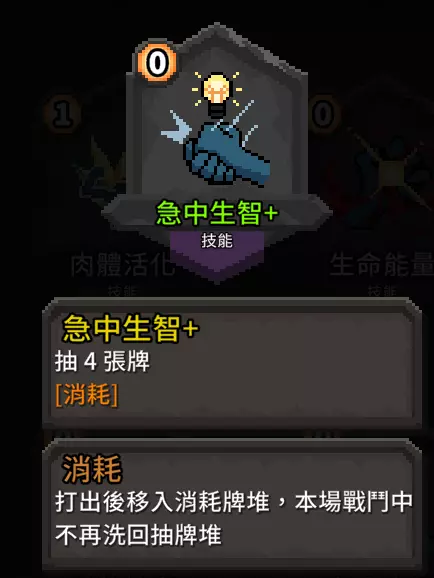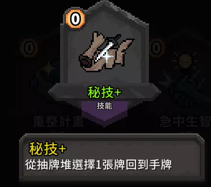 鉴于动作/能力牌大多费用较高,有了这张牌可以降低费用压力。 补充:这个卡组会有很多很多疲劳牌,所以下面两张请二选一: