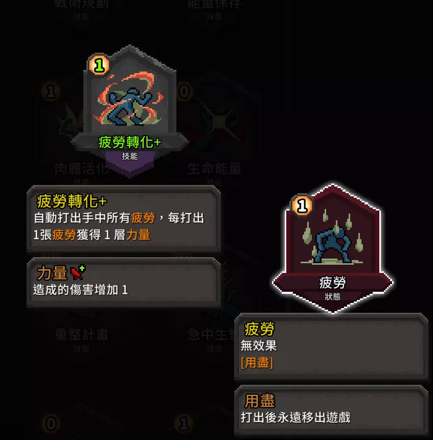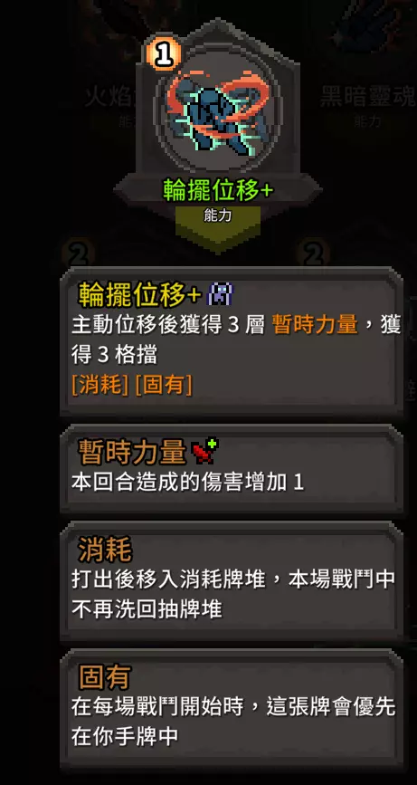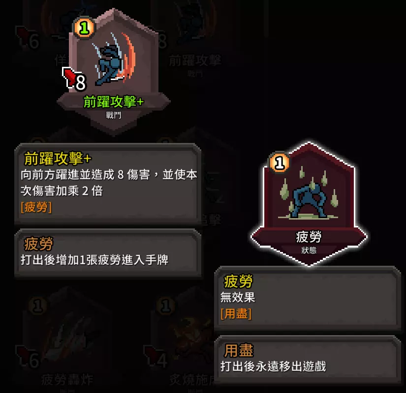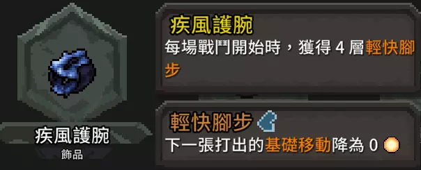 优点:由于不断追击与位移会产生大量疲劳卡,使用这张增伤卡效果会非常可观。 缺点:仅限单回合消除卡牌,很容易让疲劳卡在卡组中堆积起来。 我会比较推荐肉体强化,多回合的0费消除状态更实用,什么?你说你有减压护腕?那你还看什么!快进入下一章! 流派卡牌 能力牌篇 既然要求多段位移,那么这张是绝对不能少的: 1.
