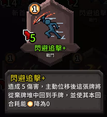 流派卡牌 攻击类 关于这个流派的攻击牌,除了要以具有【自带位移】为主要选择外…… 【闪避追击】为此流派之灵魂卡