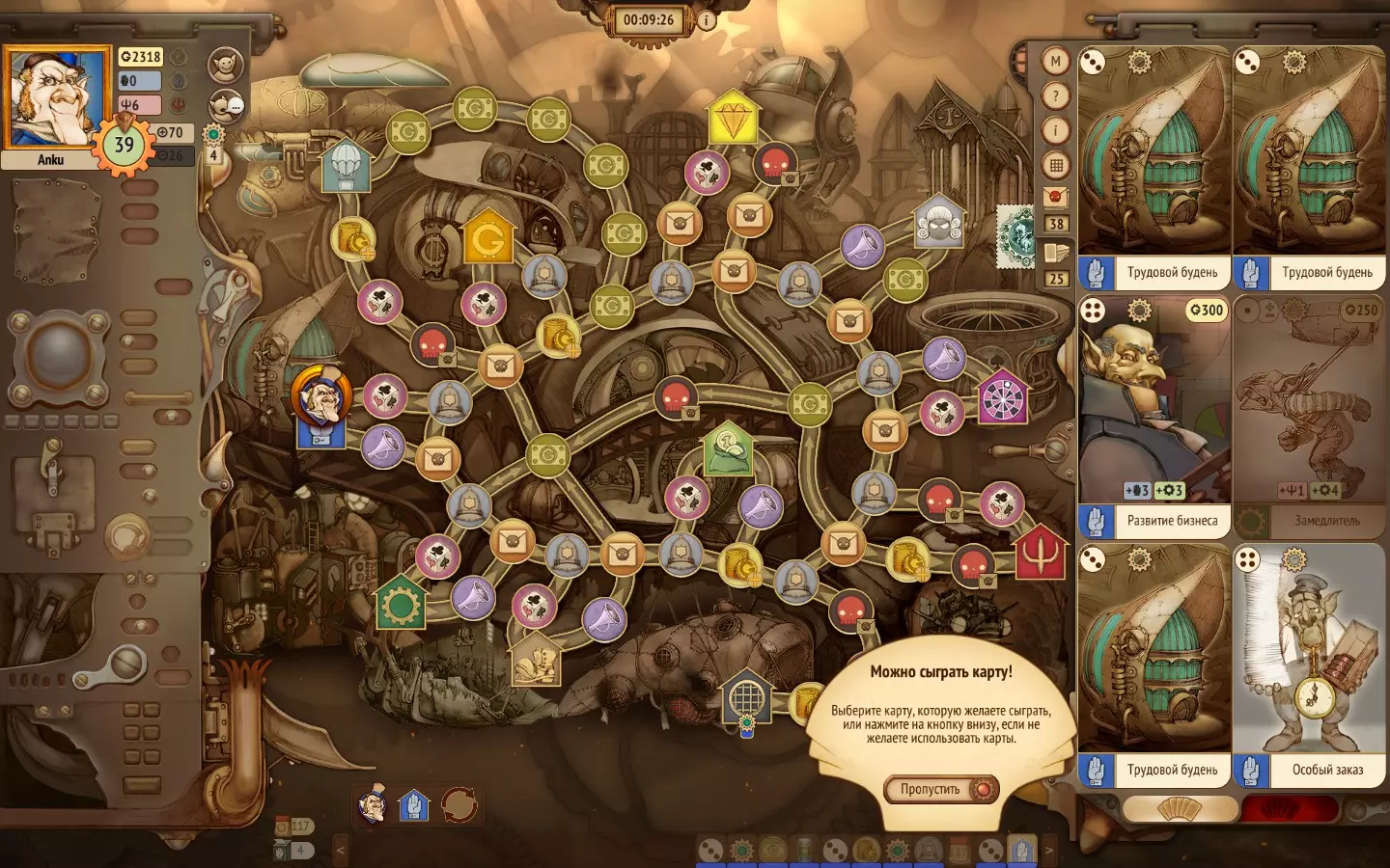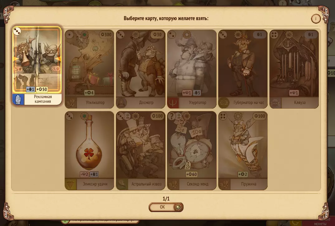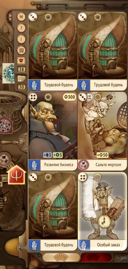 为此就需要用到【特殊订单】和【业务发展】这两张卡。它们能让我们选择一张卡来替换已打出的卡。这并不能100%保证获得需要的卡,但能大幅提高概率。在这种情况下,我运气不错,提供的可选卡牌中就有一张【办公室】卡。