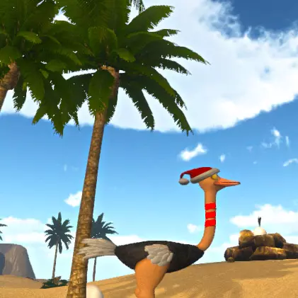 第二步:制作预览。 在上一部分中,你已经创建了属于自己的鸵鸟皮肤。现在让我们看看它在游戏中的样子,并拍摄一些精美的截图,为上传皮肤和分享做准备。 启动《鸵鸟岛》游戏,在主菜单中点击【鸟巢】。 进入后,踢一下衣柜以打开自定义界面。在顶部一行点击【工坊】按钮。第一行的第一个皮肤就是你最近修改过的那个。我们还没有更改预览图,所以它看起来和模板中的一样。我们很快会更新预览图,但现在只需点击第一个皮肤来穿上它。瞧!你的鸵鸟现在有了独特的外观!离开衣柜,前往你最喜欢的岛屿或地点拍摄一张精美的截图,我们将用它为你精心制作的皮肤制作预览图。皮肤预览图将在鸵鸟岛创意工坊以及订阅了你皮肤的玩家的衣柜中显示。 退出游戏,启动你的图像编辑程序并打开刚才拍摄的截图。你的任务是制作一个正方形的预览图,最大尺寸为512x512像素。为此,请选择图像中最重要的部分。完成后,将其保存到皮肤模板所在的位置。命名为skin_preview.jpg,如果该文件已存在,请替换旧文件。此时,你的鸵鸟岛游戏文件夹中应包含两个已修改的图像:skin.jpg和skin_preview.jpg。在本指南的下一部分,你将学习如何与【鸵鸟岛】社区分享你精美的皮肤。