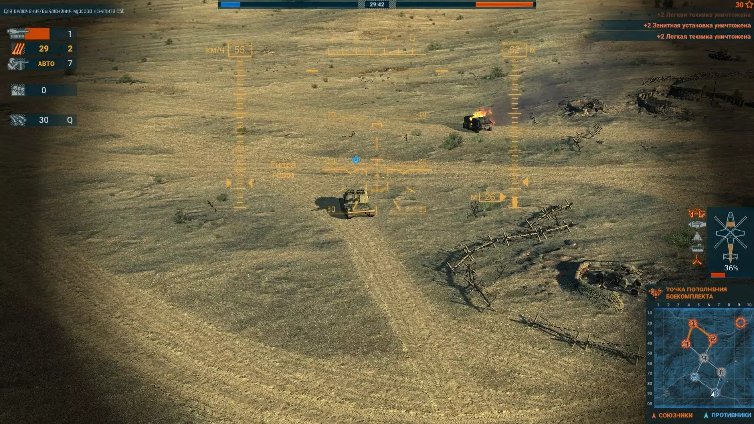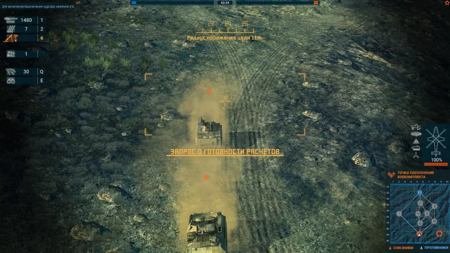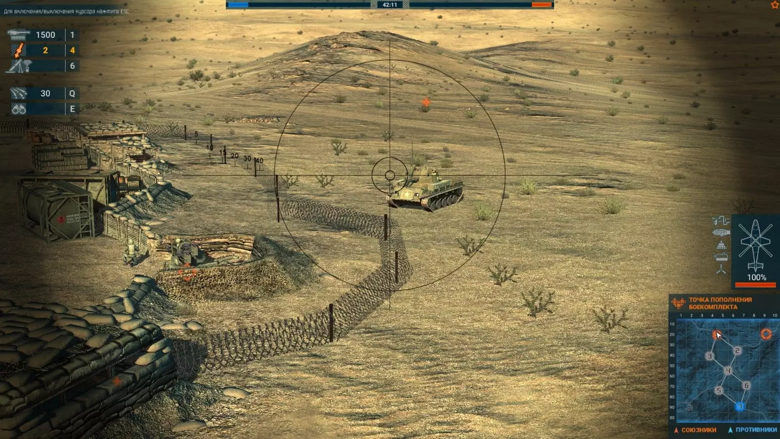 用这种方法可以在2小时内获得约4800分! 以下是上述方法的直观示例: 总结部分。技巧。漏洞。 1) 技巧。 A) 先从迫击炮说起。可以将它们投放出去,发射一定数量的炮弹后再进行重新装填。 我已经展示过了,先发射5发炮弹,然后坐进直升机,将迫击炮重新装载回旋翼(原词:вертушку),再将它们投放到同一个区域。这样就能重新装填了!这就是游戏的机制。B) 第二个技巧。可以驾驶直升机飞往敌方核心点,更准确地说,飞过核心点后投放5到6名携带火箭筒的士兵。他们会在敌方载具接近核心点的路径上对其进行摧毁。 В) 按用途使用运输机!带上维修工具和弹药。将其运送到地图的特定位置并平稳降落,不要按“G”键释放货物,否则货物会损坏!这样我们就搭建了一个小型着陆点。现在可以在该区域补充弹药和修复耐久度,无需匆忙飞回重生点了! Г) 有时一发反坦克导弹能同时摧毁两个铁皮桶。 Д) 如何使用火箭弹,直观示例! Е) 当我们按“V”键切换到驾驶舱视角时,瞄准面板左下角会显示武器射程。