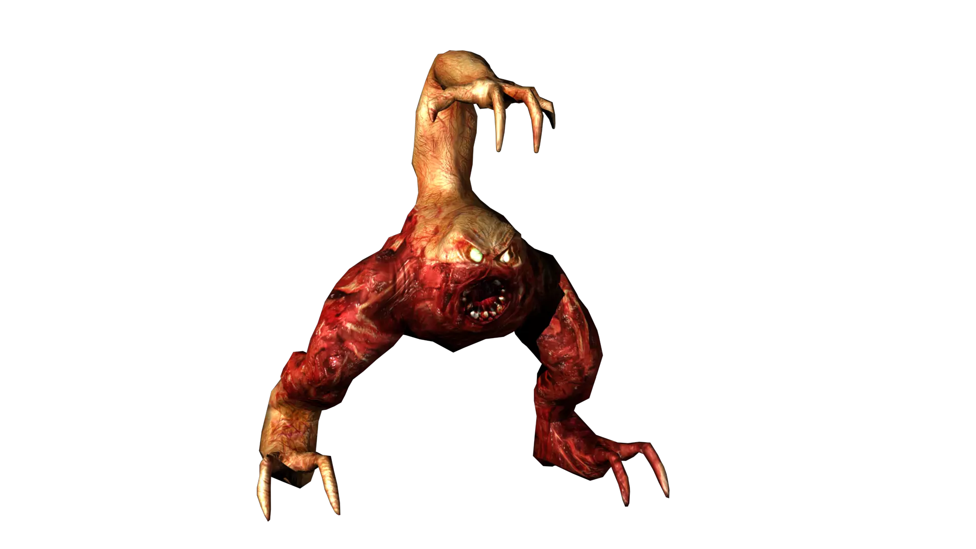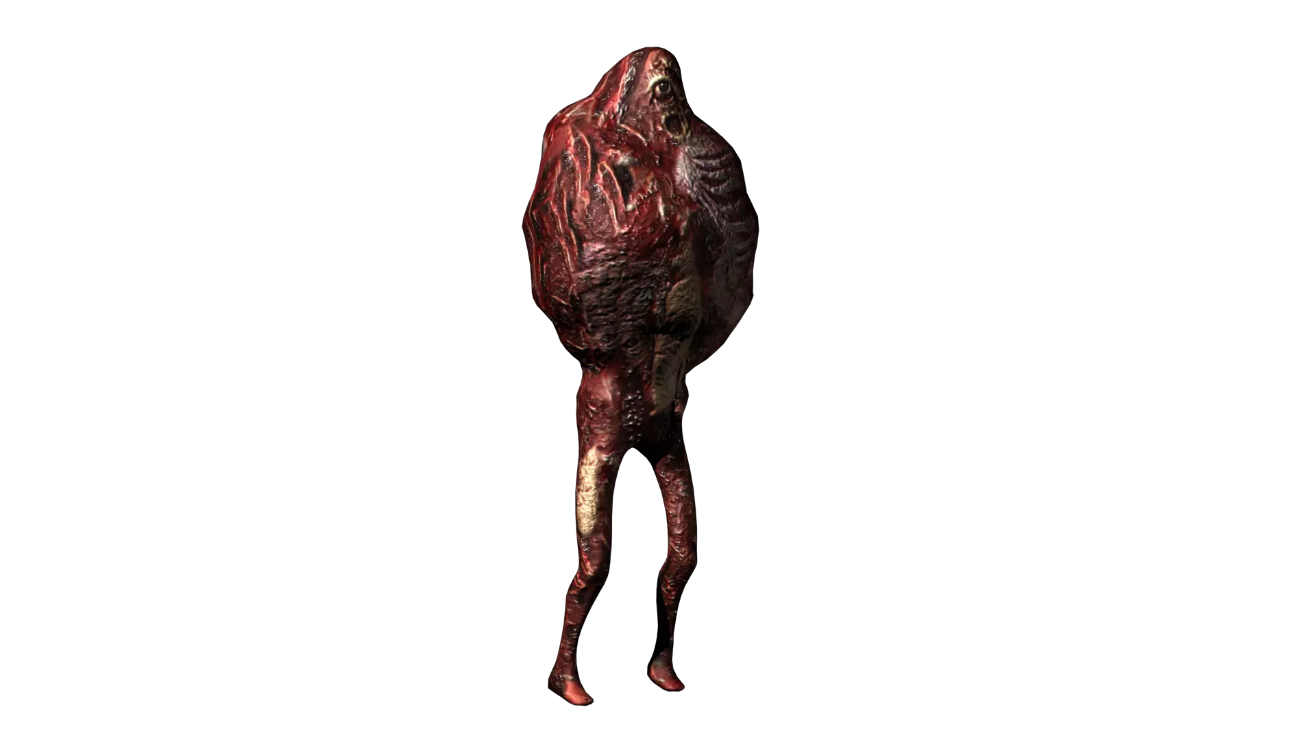 生物 生命值 - 255 速度 - 缓慢 攻击伤害 - 20 体型 - 中等 这些生物行动迟缓、智商低下,只有攻击其头部或身体顶端的肿块才能将其杀死。由于肿块相当小,因此需要仔细瞄准该部位射击。和僵尸一样,它们移动缓慢,但如果让它们靠近,就会构成更大的威胁。它们会使用冲撞攻击,所以一旦有生物靠近,务必确保自己远离。