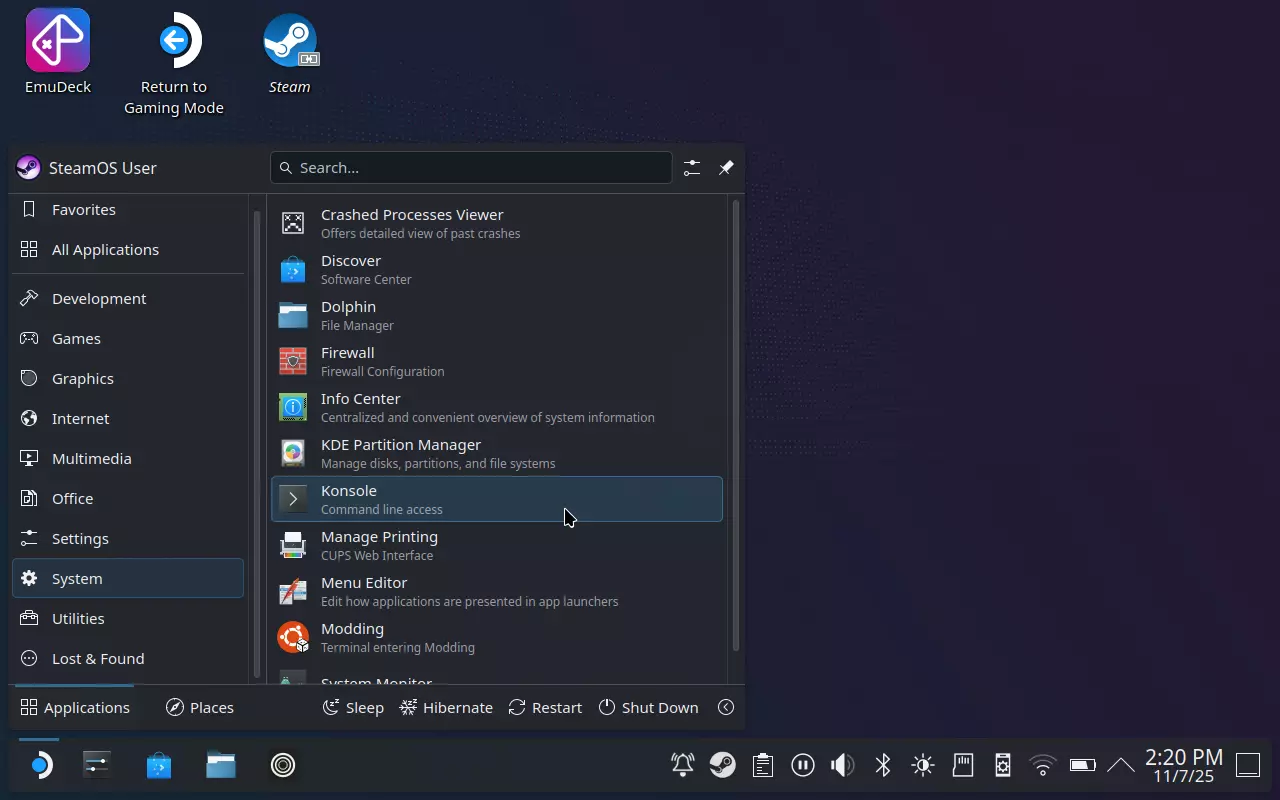 一个能将几乎所有音效替换为更高质量版本并修复明显音频问题的模组。为Steam Deck/Linux用户提供的简易指南。 所有功劳归于Cosmic-Cee制作的模组。 无论是忘记《块魂》的老朋友,还是初次接触《块魂》的新玩家,《我们的块魂 REROLL+ 王室 reverie》移植版都存在诸多音频问题,包括(但不限于): - 音效音调错误 - 音频质量低下 - 许多物体缺少滚动音效 - 行走音效速度过快且无法正常循环 - 部分物品的碰撞音效与滚动音效混淆 - 其他更多问题 该模组修复了游戏中存在的几乎所有音频问题! 注意:本指南专门针对Steam Deck/Linux用户。Windows用户可参考模组页面上的官方指南。 我们该如何操作呢?该怎么办……? 在Steam Deck上安装模组,请按照以下简单步骤进行: 注意:你可以远程连接到Steam Deck并完全在无界面状态下运行脚本! 另请注意:你也可以使用KDE Connect应用在电脑之间远程复制粘贴剪贴板内容! 准备工作:切换至桌面模式 按下Steam Deck上的【Steam】按钮: