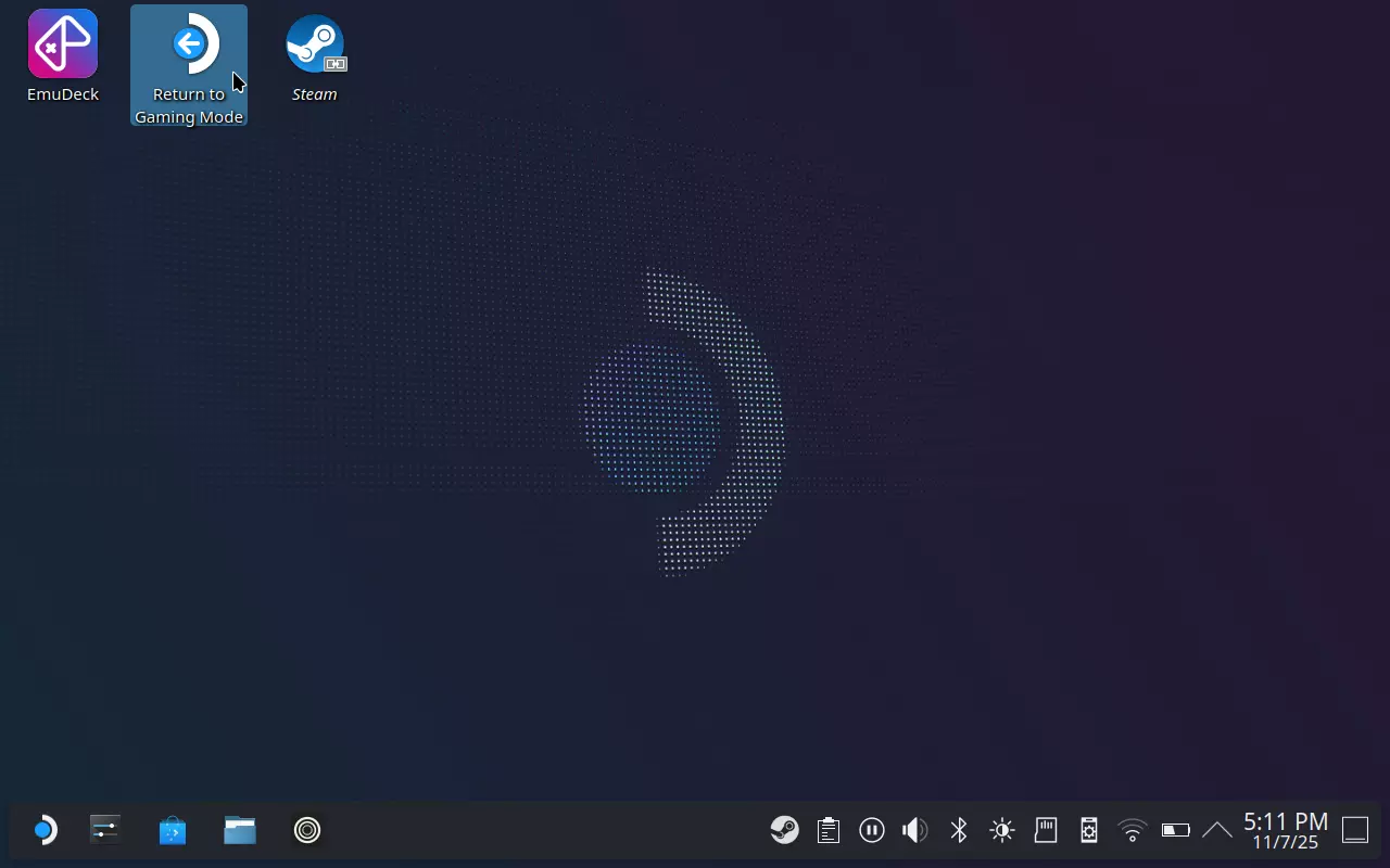 退出桌面模式 只需按下Steam Deck上的【B】键即可隐藏键盘。 在桌面双击【返回游戏模式】即可回到游戏模式(显而易见)。