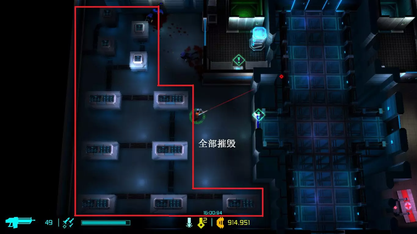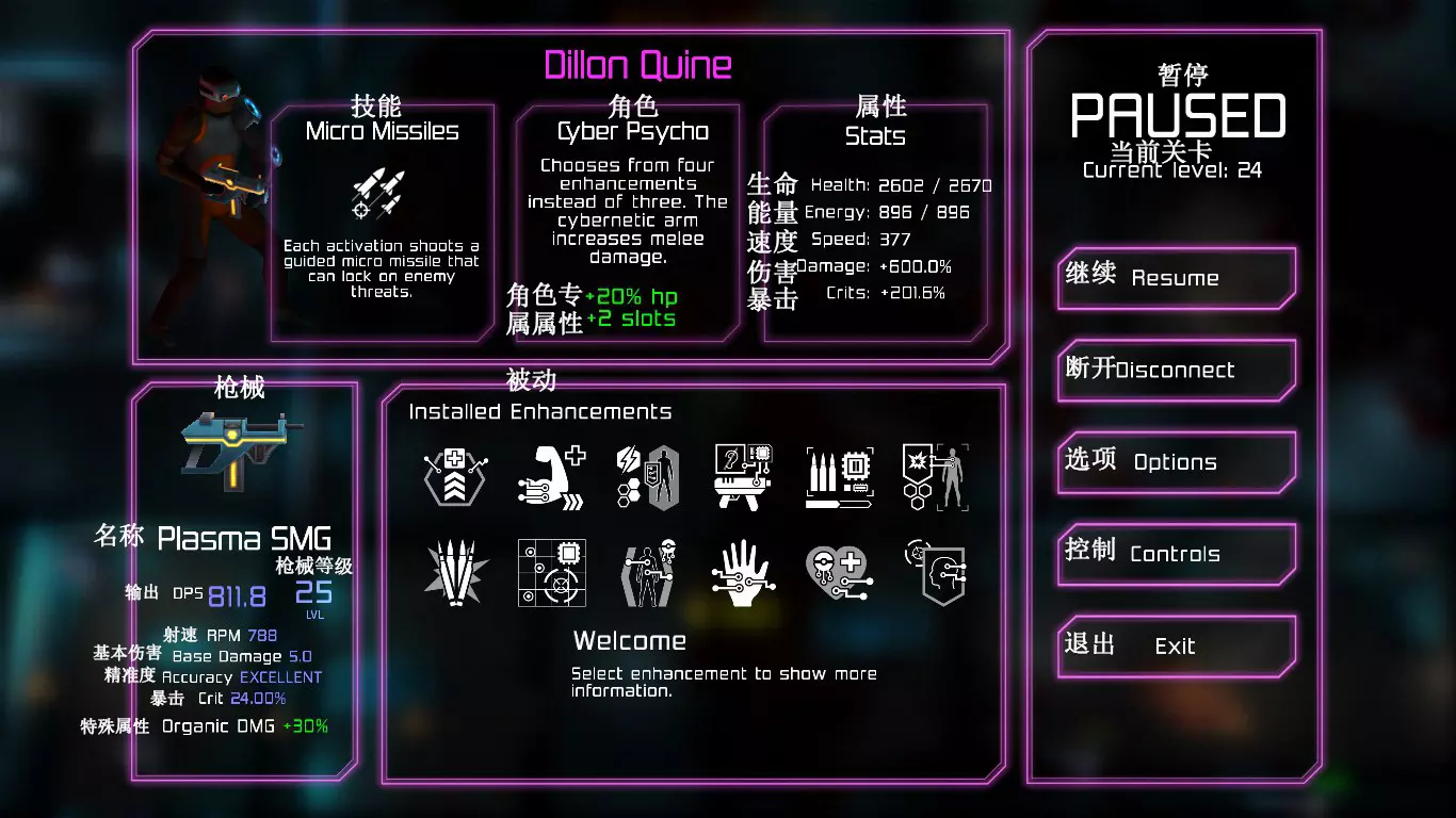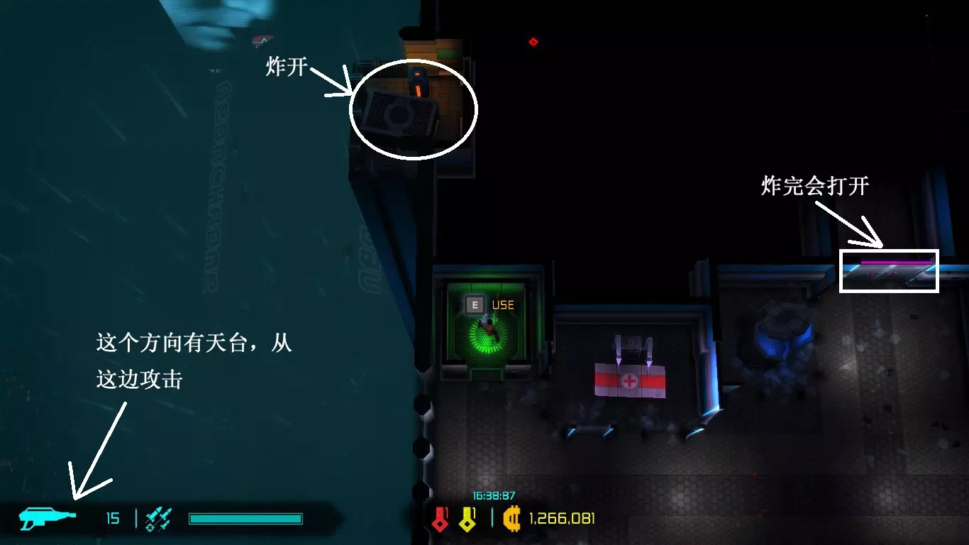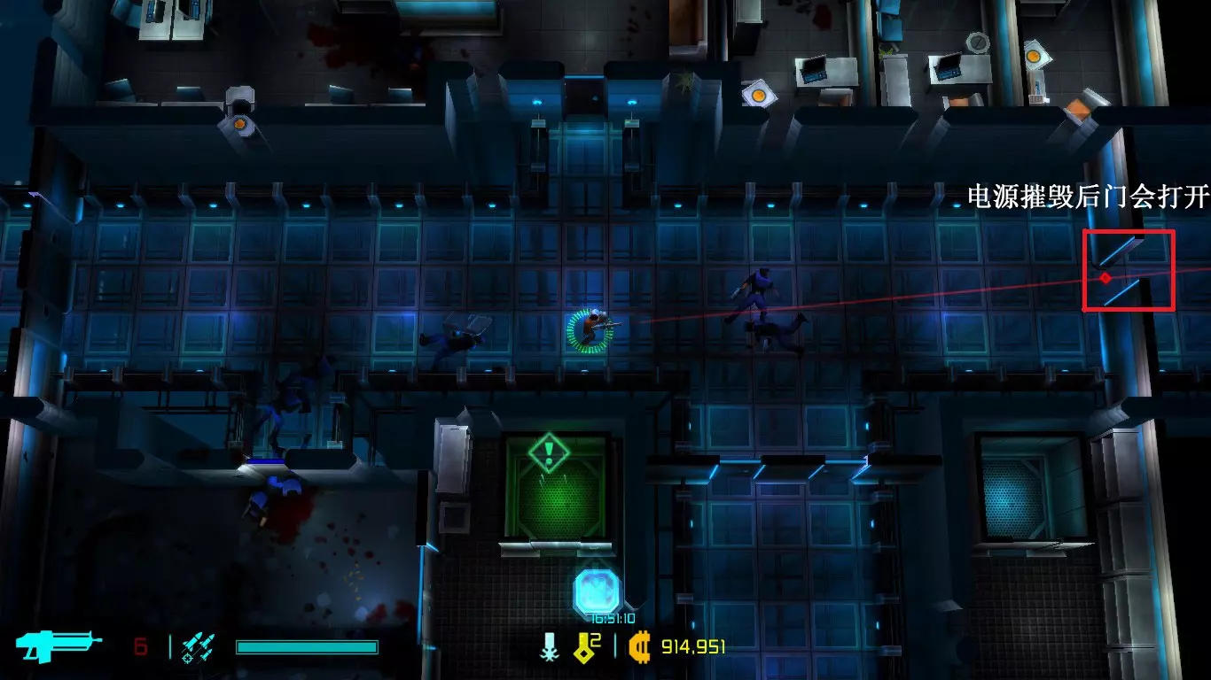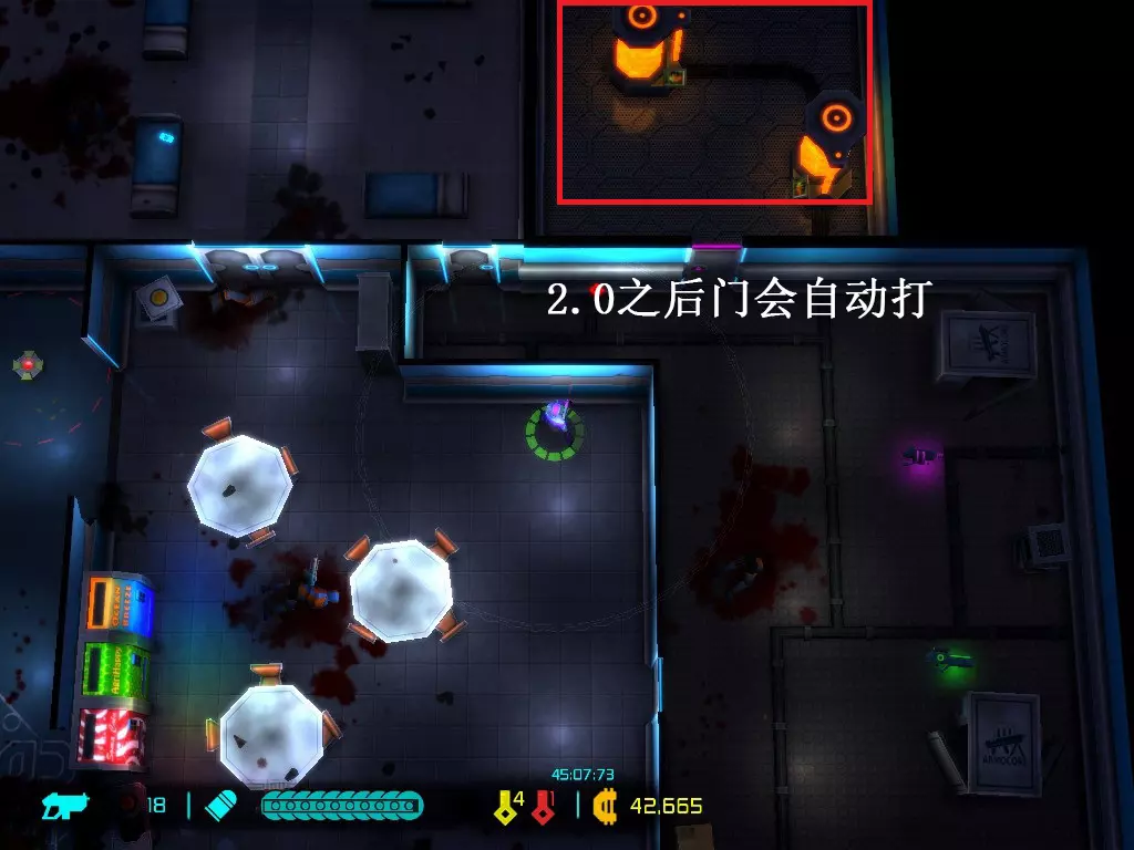 每次地图都是随机生成的,因此每次游玩的关卡大多与上次不同(但玩多了还是会遇到重复关卡)。隐藏关卡也不固定,若想刷取隐藏武器、技能或被动,需要一定的运气。 每次游戏可自行选择进入已通关的大楼层(前提是已击败该楼层之前的BOSS关卡)。 BOSS关卡是固定的:第一个是机械蜘蛛,第二个是蜈蚣,第三个是悬浮坦克,第四个是加长版蜈蚣或3个机械蜘蛛,第五个是监督者。 困难关卡会出现一群强化敌人或两倍援军等情况,这类关卡可以快速通过,无需战斗。 两个关卡之间若有隐藏关卡标识,前一个关卡即可进入隐藏关卡(例如图中4、5小关之间有隐藏关卡标识,那么在4小关就能进入)。 查看状态(按ESC键)。