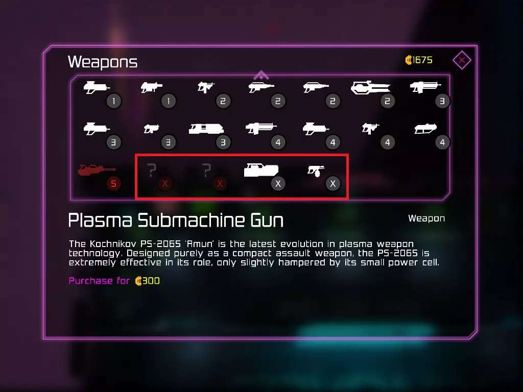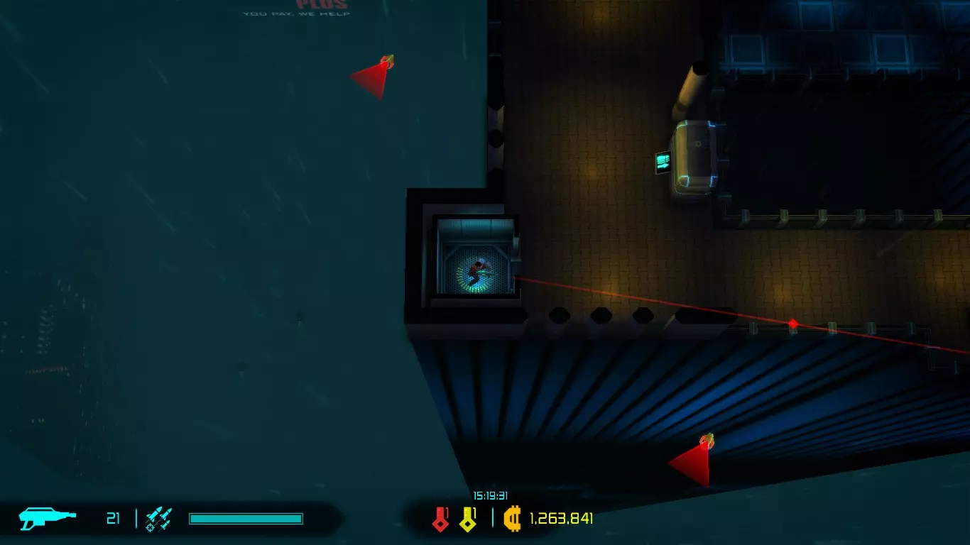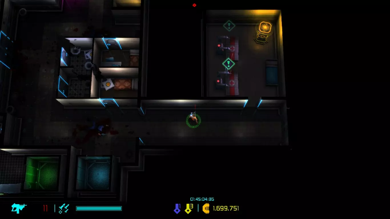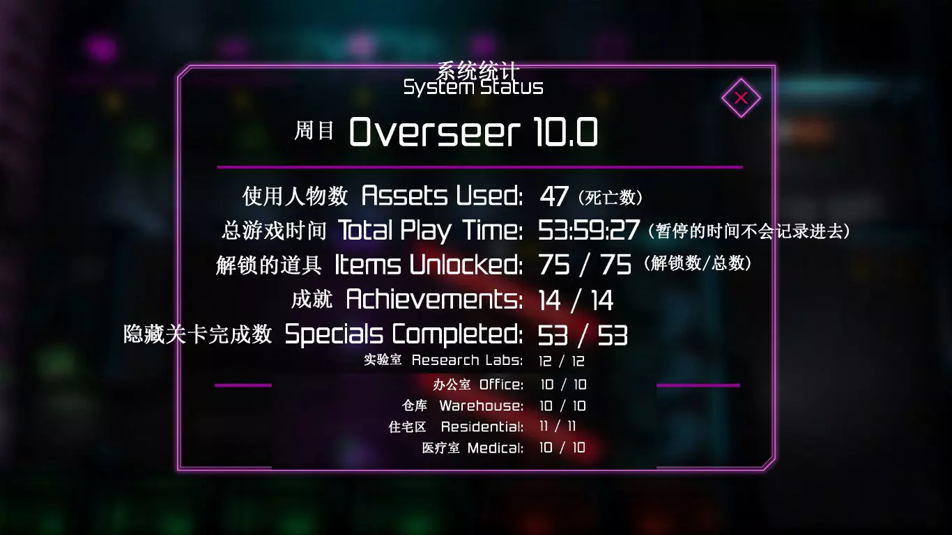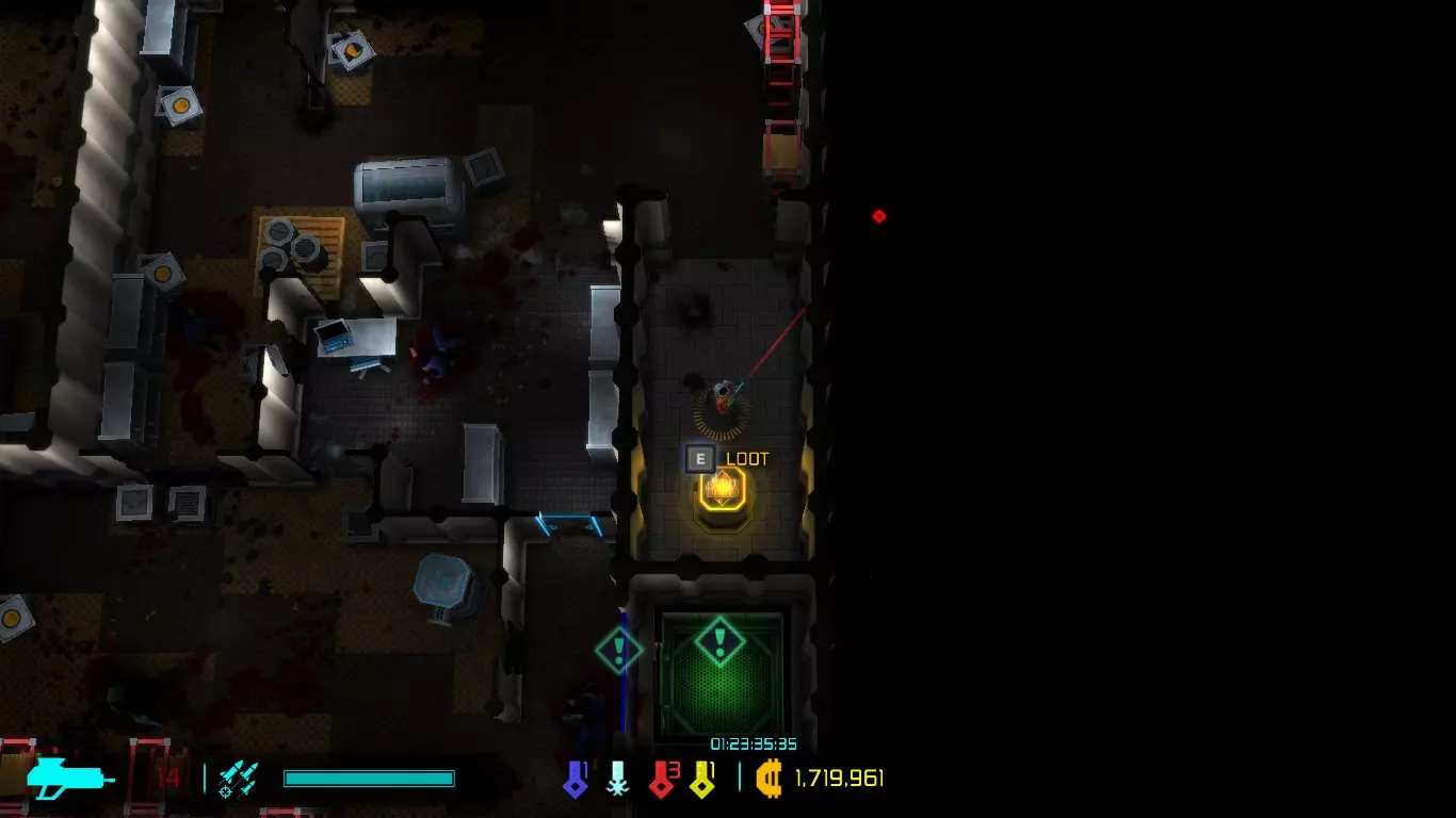 每次地图都是随机生成的,因此每次游玩的关卡大多与上次不同(但玩多了还是会遇到重复关卡)。隐藏关卡也不固定,若想刷取隐藏武器、技能或被动,需要一定的运气。 每次游戏可自行选择进入已通关的大楼层(前提是已击败该楼层之前的BOSS关卡)。 BOSS关卡是固定的:第一个是机械蜘蛛,第二个是蜈蚣,第三个是悬浮坦克,第四个是加长版蜈蚣或3个机械蜘蛛,第五个是监督者。 困难关卡会出现一群强化敌人或两倍援军等情况,这类关卡可以快速通过,无需战斗。 两个关卡之间若有隐藏关卡标识,前一个关卡即可进入隐藏关卡(例如图中4、5小关之间有隐藏关卡标识,那么在4小关就能进入)。 查看状态(按ESC键)。
