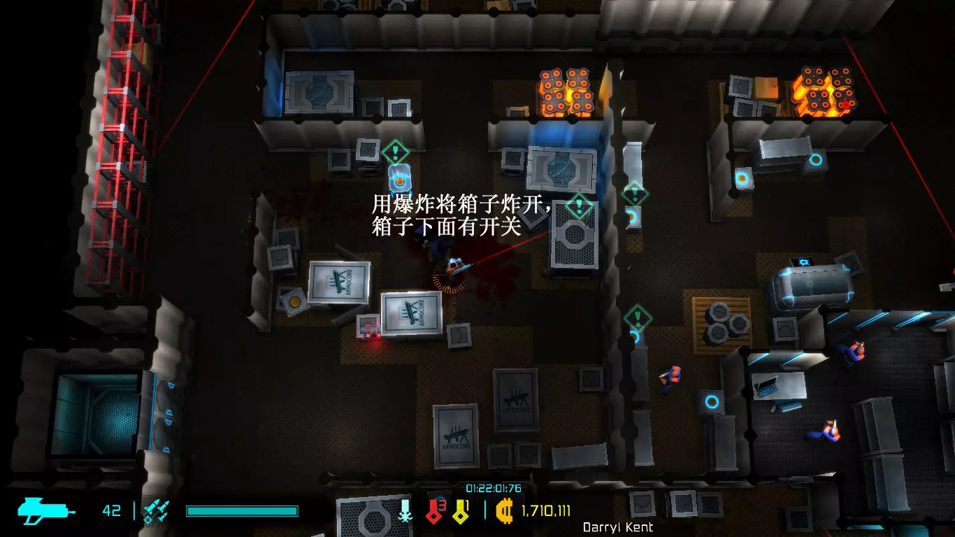游戏操作:wasd移动,e使用,r换弹夹,空格键近战攻击,鼠标左键射击,右键释放技能 游戏界面: 现在游戏有中文了,想获取成就可以只看成就那一栏