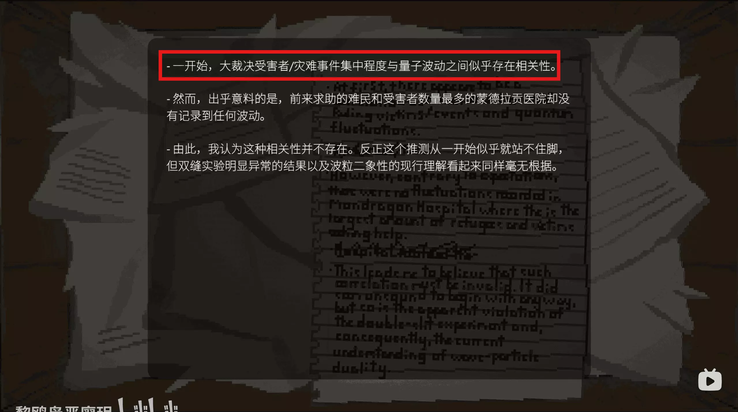 (图中露易丝说在医院没有波动是因为医院的【热点】已经被马克和妮可修复了) 山顶咖啡馆、医院、妮可曾待过的疏散中心、【新居区】都是大裁决受害者集中程度最高的区域,所以这些地方成为了【热点】。 妮可的家乡则是灾难事件集中程度最高的区域,所以成为了【热点】。 至于让凯茜殒命的那个悬崖为什么也是【热点】,游戏中没作解释,但可以猜测大概率是灾难事件集中程度最高的区域,因此成为了【热点】。 6.马克与妮可的【量子】出现了【纠缠】,当他们在【热点】地区观测对方时,会发生【坍缩】。 依据:第三周目第二章第七小节——露易丝对此做出了解释