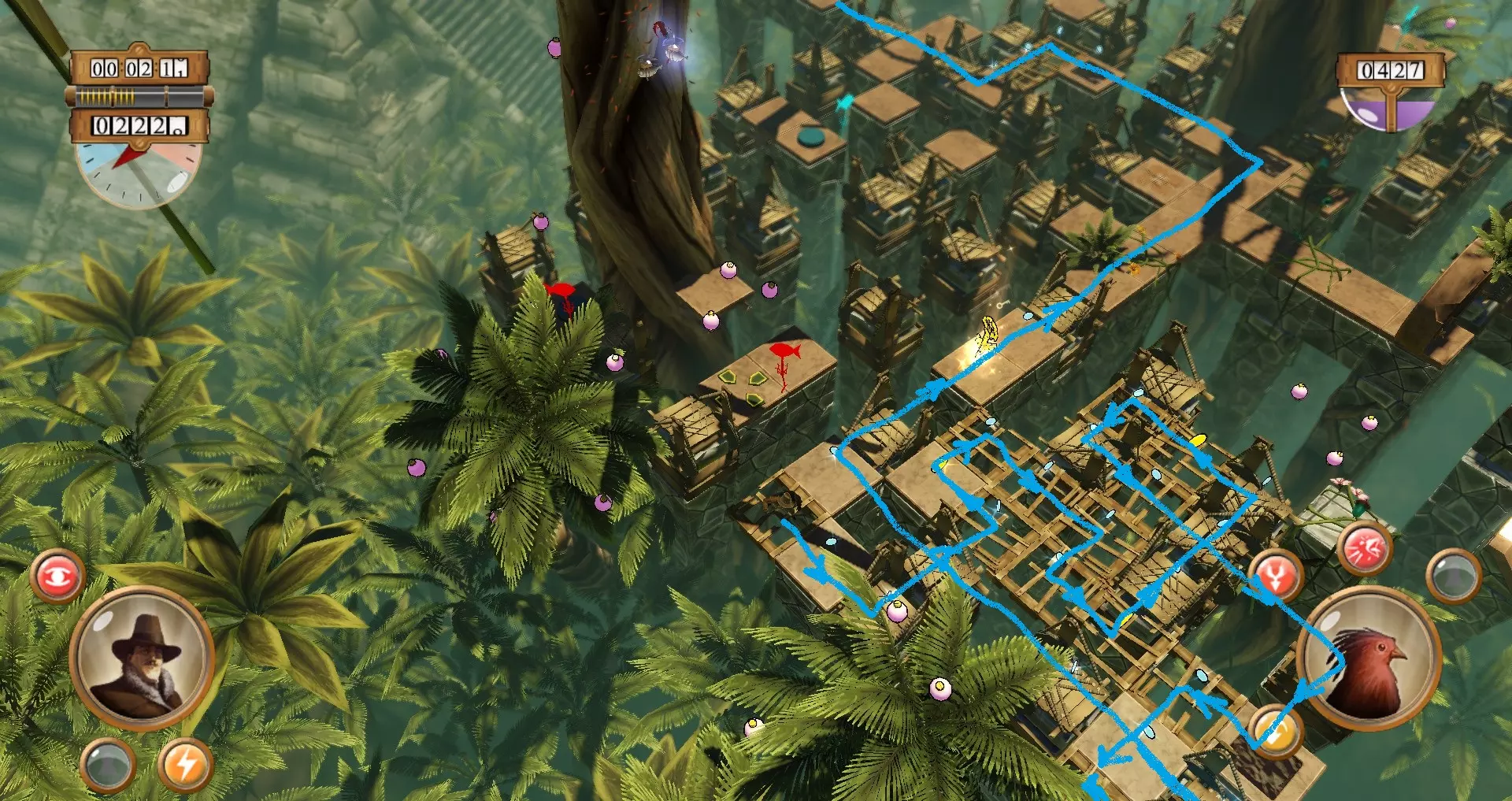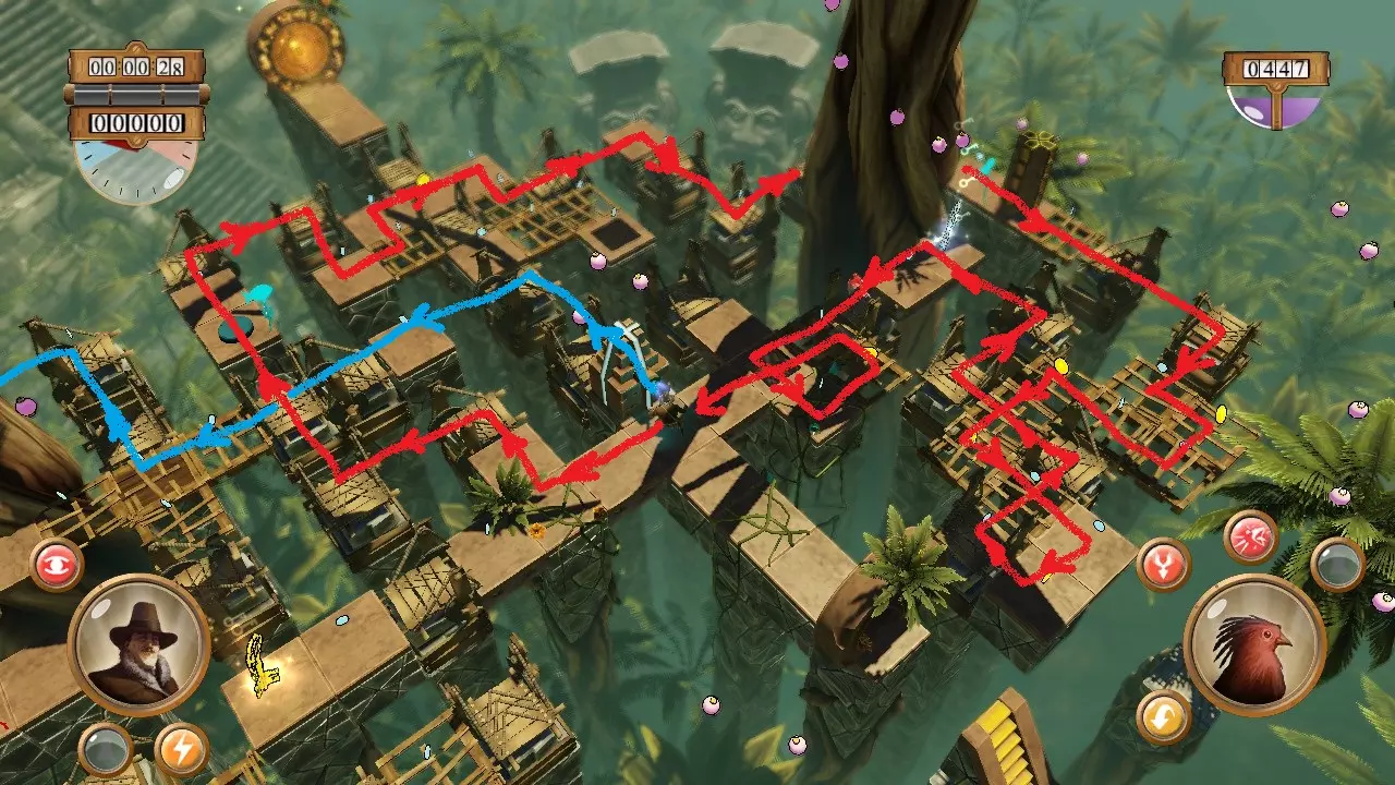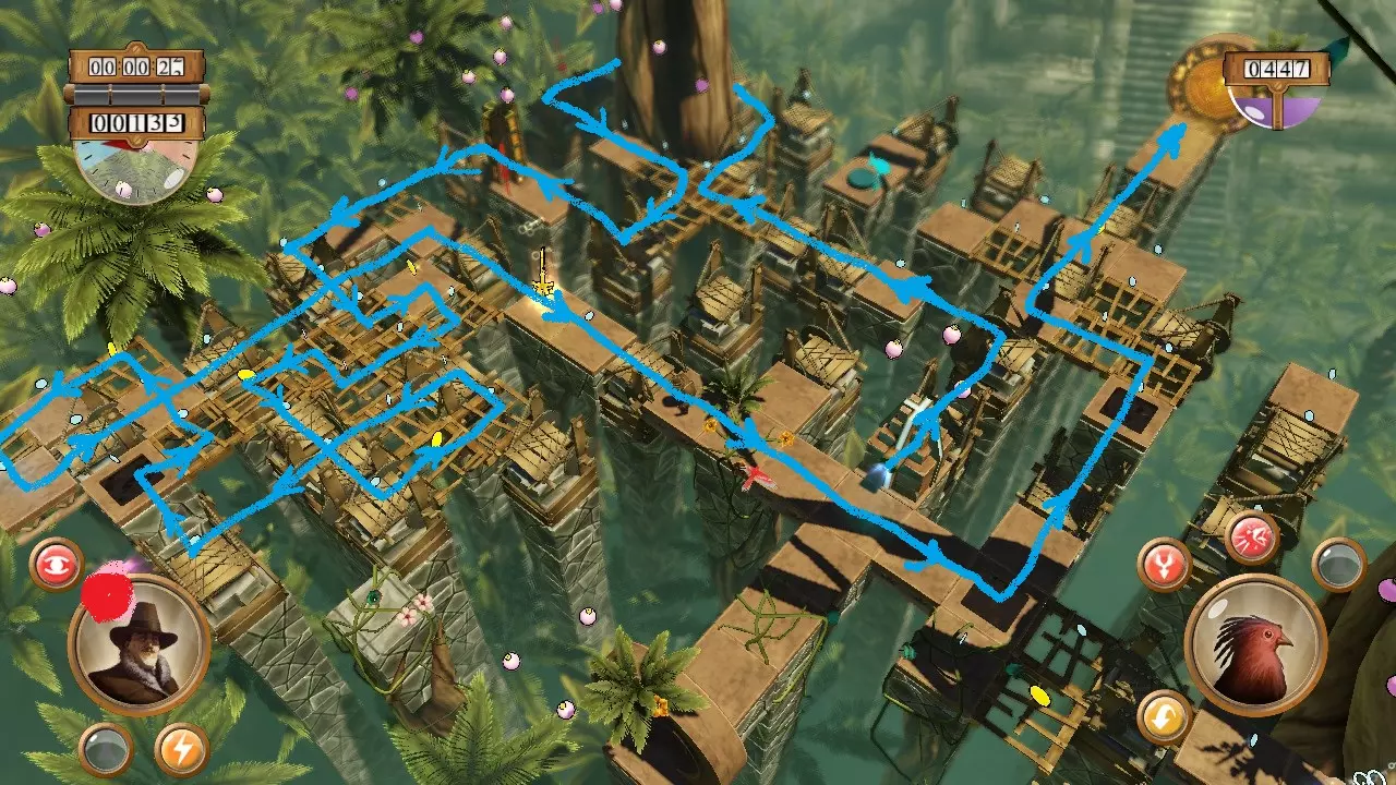 快速图文指南:如何获得金牌 亚马逊关卡12 / 向上,向上,起飞 希望本指南能帮你节省时间,避免挫败感…… 简介 地图分为两个区域: 红线 蓝线 红线 必须先完成红线以收集第一把钥匙,这把钥匙将打开传送门。 这里有两个观察点: 重要提示:务必先完成红线!!!