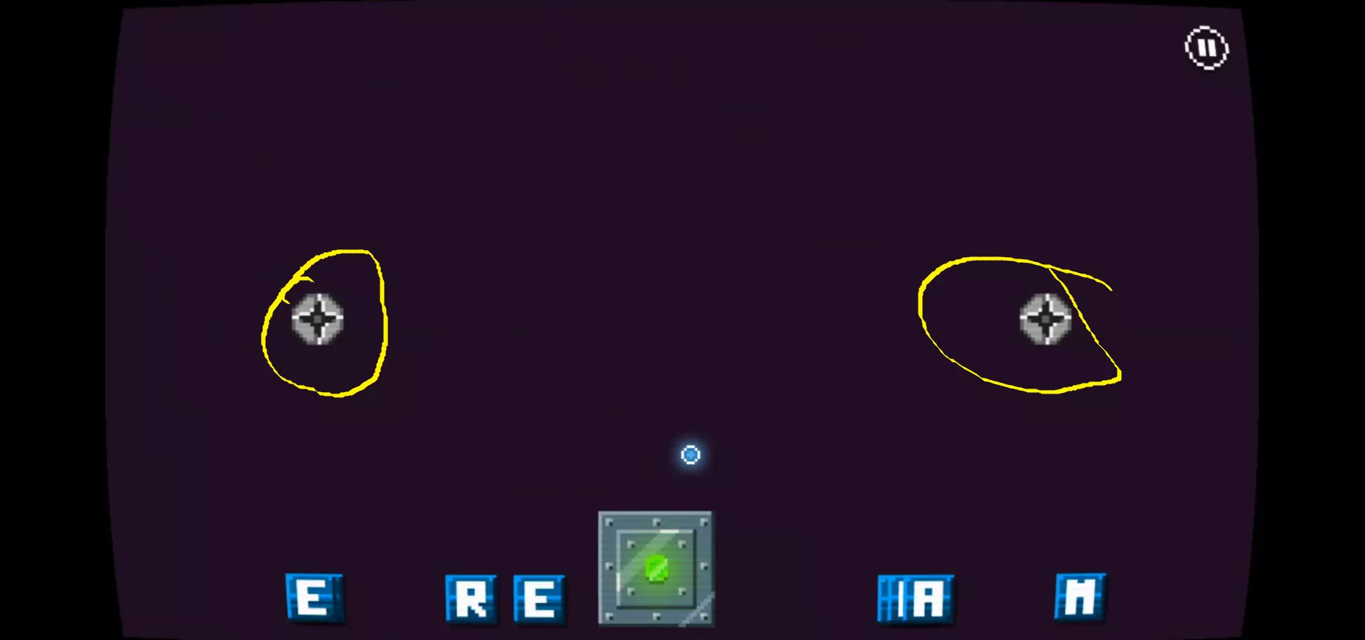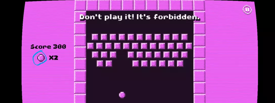 5) 向左走开始游戏(下一个成就是在旁白说出“GOAT”之前清除所有砖块)。移动屏幕底部的平台,让它击中上方的砖块。当旁白拿走你的球时,获取下方图片1中蓝色圆圈标出的另一个球。你必须完成所有这些才能获得进入下一阶段的杯子。拿到杯子后,带着它到右边的屏幕。