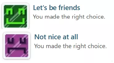 8) 与成就选择相关,因此需要两次游玩:选择“是”可获得【Lets Be Friends】,选择“否”可获得【Not nice At All】