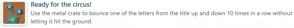 4) 获得上述成就后,将箱子从尽可能高的地方扔下,把所有字母都撞下来,露出2颗螺丝。拧下这两颗螺丝,用地上的字母拼出单词【GAME】。