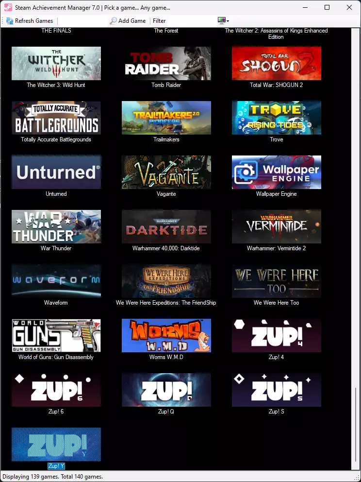 我们很高兴该程序不需要任何授权,并且无需繁琐操作,就能自动从Steam账户中同步游戏。当然,前提是应用程序在后台运行。接下来向下滚动找到我们的目标游戏,双击即可。