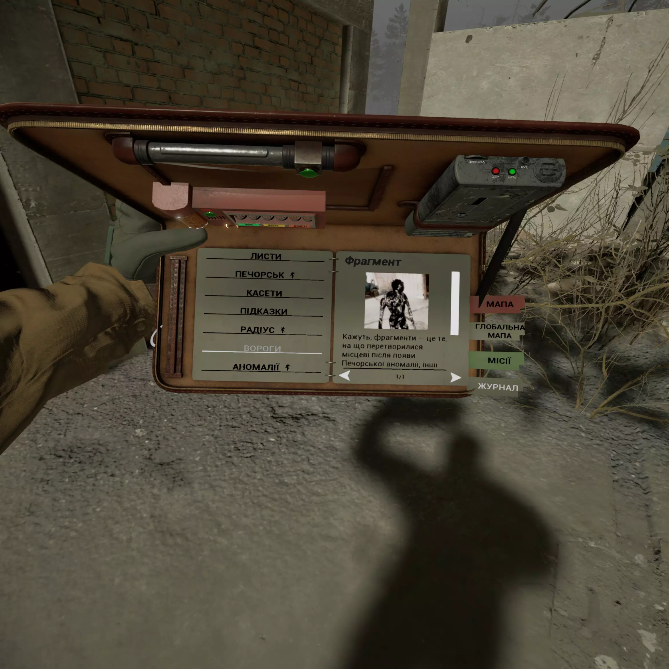 《Into the Radius VR》游戏文本本地化 欢迎,勇敢的潜行者探索者! 信息 翻译基于英语和德语,并保留了英语的结构 乌克兰语不会替代任何现有语言,而是作为额外语言添加 此翻译通过定制AI完成,随后进行了人工编辑和游戏内测试《Into the Radius》小提示(技术细节):在游戏教程中,你可能会注意到一些奇怪的文本。这是由于游戏的一个技术特性,即动态组合句子:【词语A】+【词语B】+【句子其余部分】。 例如:在英语中,形容词没有性的变化,所以“Right Hand”和“Right Stick”写法相同。而在乌克兰语中,我们需要不同的词尾:“ПравА рука”(右手),但“ПравИЙ стик”(右摇杆)。由于游戏文件中“Right”一词仅此一种写法,因此不得不做出妥协。 所以在教程阶段,你会遇到“按下右摇杆”这一表述。 好在这一技术细节主要仅出现在教程阶段,不会影响对整体剧情的理解。 如何安装:下载.pak文件,将.pak文件移动至指定路径...现在,您可以启动游戏,并在设置中选择语言【乌克兰语】o(^▽^)o