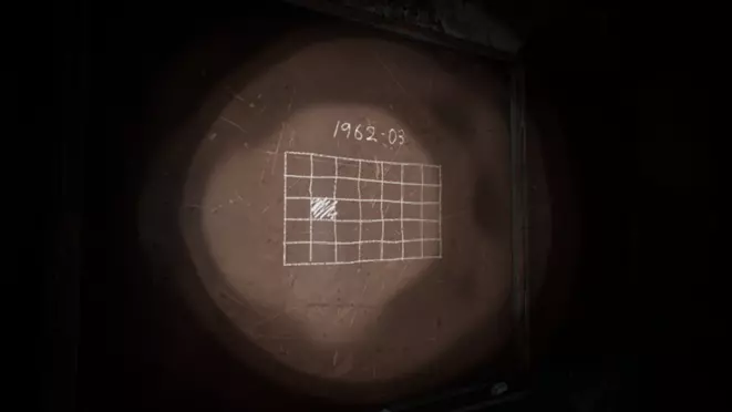 6201层的黑板上画着一个网格,其中一个方格被涂上了颜色。网格上方写着数字1962-03。 提示1:【异常:日历涂鸦】的编号同样以196203开头。 提示2:该网格代表日历的格子。 答案:将黑板上的网格与第二个走廊里的日历网格重叠后,12日对应的区域是被涂色的部分。由此可推断出【异常:日历】的编号为19620312。 步骤2:工厂区域密码
