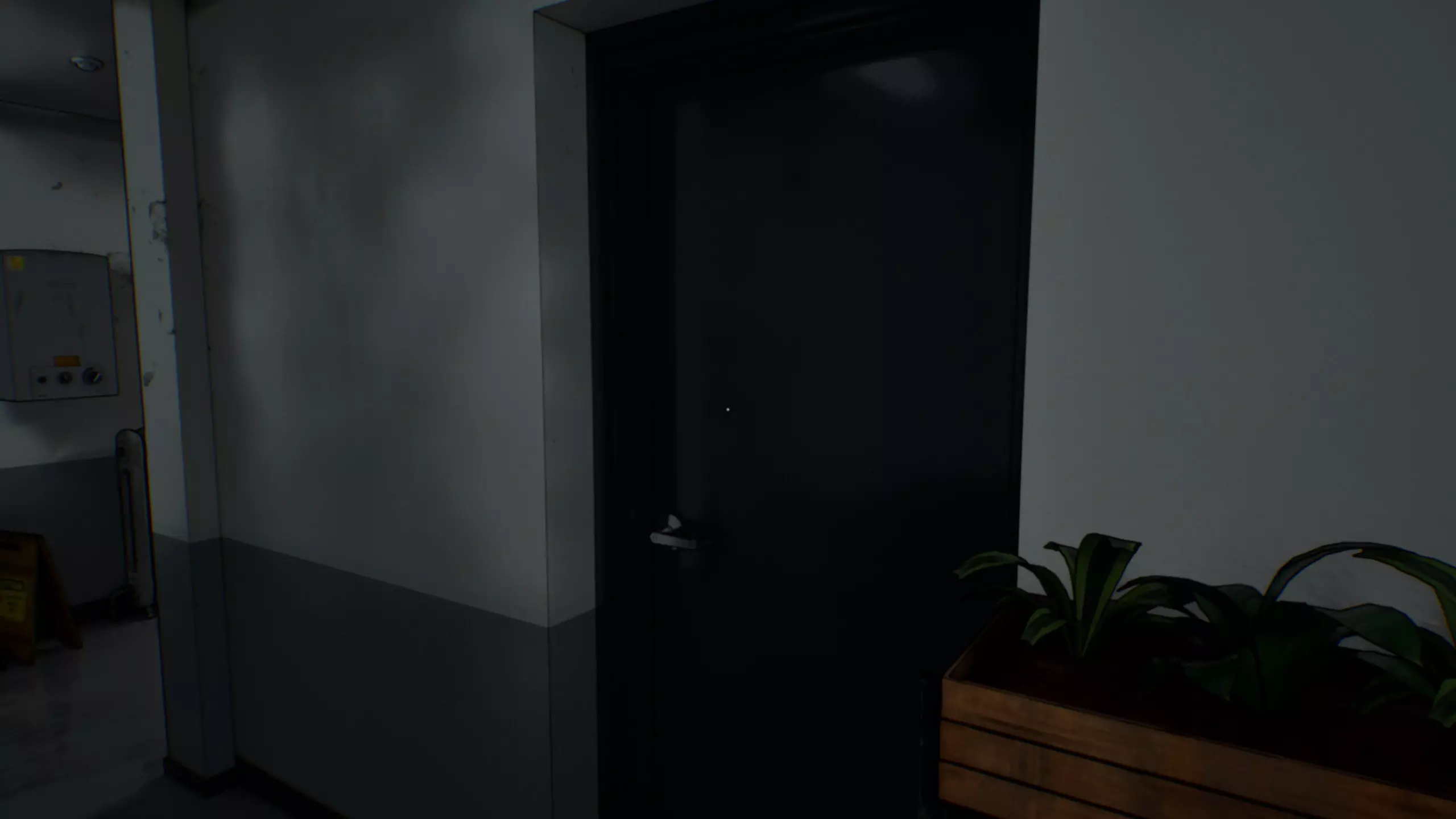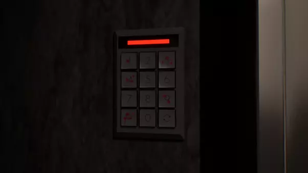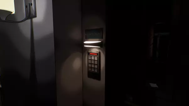 你可以在大厅的键盘上输入数字。接待台上有一份关于其用法的简单说明文件。 提示1:键盘上有血迹。 提示2:血迹只出现在特定的按键上,并且每个按键上的血滴数量各不相同。 答案:1键、9键、4键、3键和回车键上分别有1、2、3、4、5滴血。这指示了输入顺序。正确答案是1943。 走廊1的锁着的门