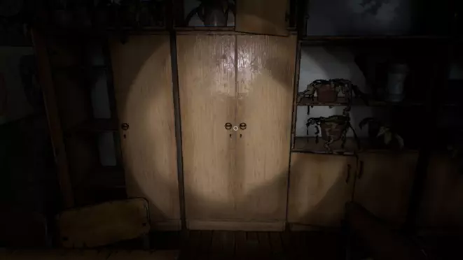 提示1:8023-97-90可能与【异常现象:敲门声】的日期有关。 提示2:8023对应【异常现象:敲门声】中的1976年。 答案1:每个数字都是用9减去原数字得到的。由此可知,日记写于1976年2月9日。在大厅的键盘输入19760209即可触发异常现象。 答案2:聆听【异常现象:敲门声】时,能听到特定的敲门节奏。由于最后一次敲击需要重复两次,按3、4、2、5、5的顺序敲门即可打开门。 大衣架谜题
