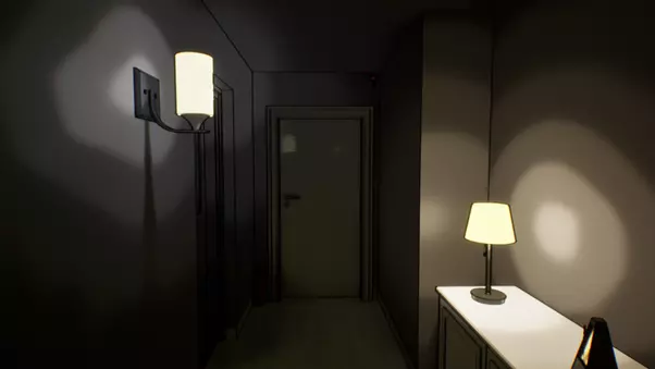 在大厅的密码键盘上输入代码后,你将面对一条伴随着节拍器声音的走廊。走廊尽头的门是锁着的。 答案:箱子最下面的抽屉里有一把钥匙。拿到钥匙后,你就能打开第一条走廊里那扇锁着的门了。 到达一楼 每层楼都可能出现异常现象。 如果出现异常,你必须回到起点并乘坐电梯。 如果没有出现异常,你必须走到走廊尽头并乘坐电梯。 如果发生了异常,下一层第一条走廊的抽屉里会出现一份关于该异常的文件。你可以查看这些文件,了解发生了哪种异常以及你本应注意哪些细节。如果你继续正确识别异常,就能到达1楼。 神秘男子的来电