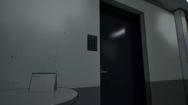 进入6201层后,你会发现储物柜是锁着的。柜子上画着一幅灯的图案。 提示1:柜子顶部似乎有一个电子设备,顺着电线可以看到它与天花板灯相连。 提示2:灯光在闪烁,你会注意到这种闪烁有特定的规律。 答案:闪烁的灯光是摩尔斯电码,可通过【关于摩尔斯电码】文档进行解码。储物柜密码为0214。 异常现象:日历涂鸦与工厂空间代码