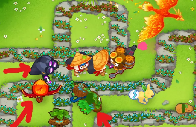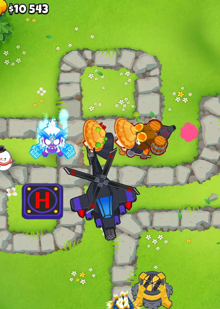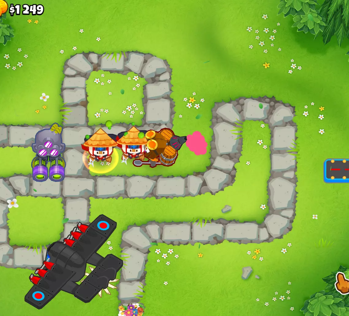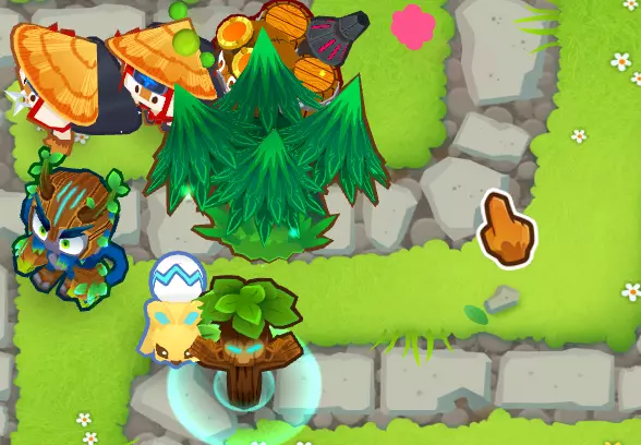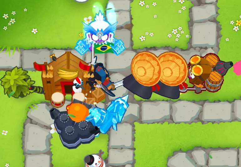 在使用艾蒂安的组合后,我会利用这个增益效果来使用那些本身无法探测迷彩气球且这是它们唯一缺点的猴子。 这是我游戏结束时的情况: