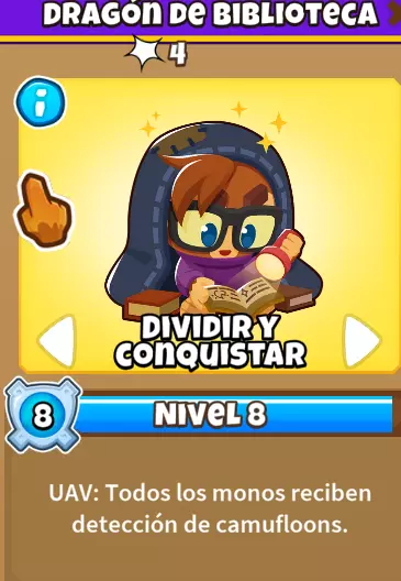 El Buffo Etienne 会为地图上的所有猴子提供【Buff】,使它们获得迷彩侦测能力,但这仅在 8 级之前有效。