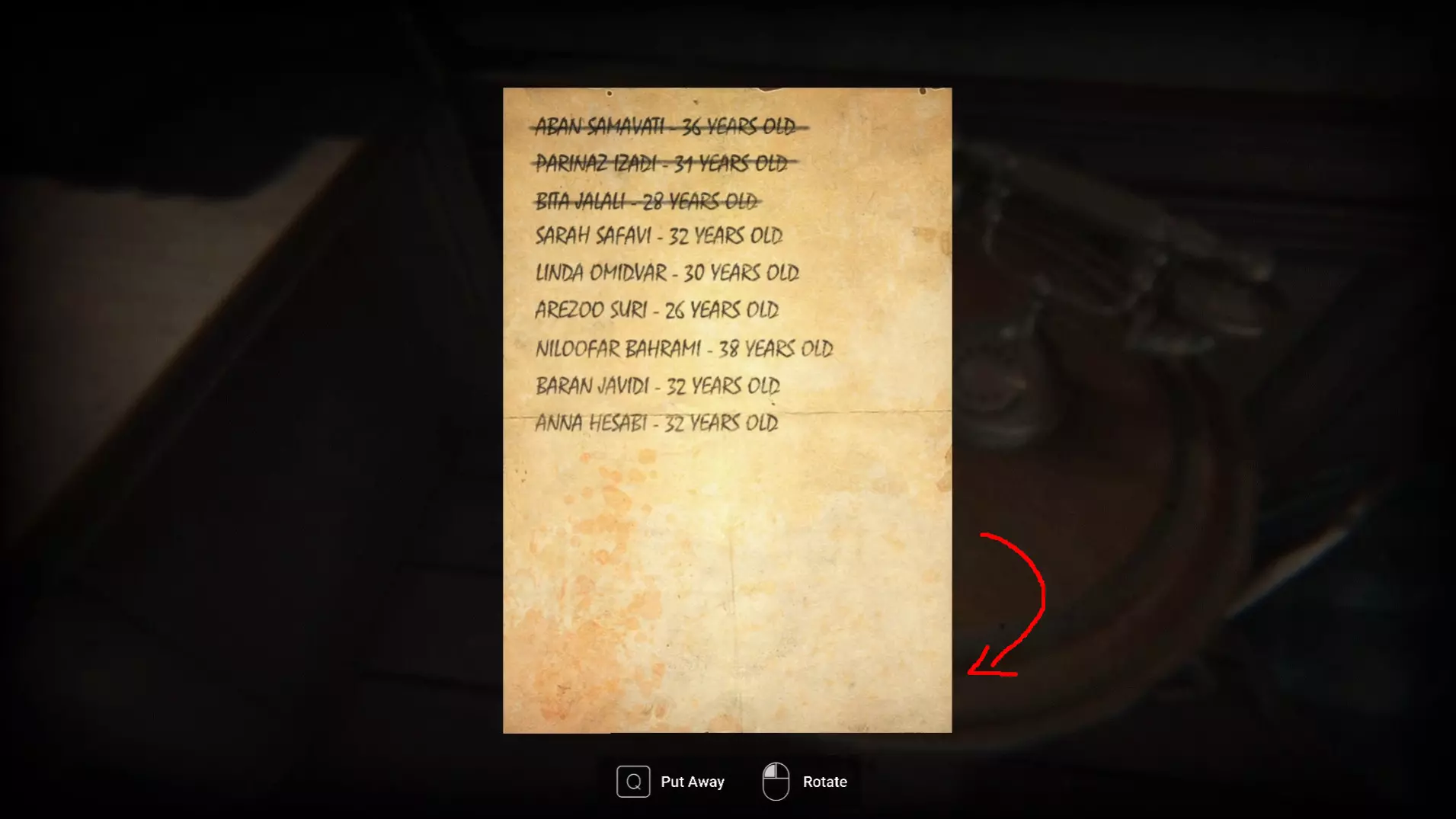 这个单词拼出来是【PAST】 当你得到最终的单词后,按顺序逐个字母进入对应的门。 Escape(完成游戏的第一个结局) 这是剧情驱动的结局,当你以最初进入的方式离开 mansion 时,会在游戏结束时获得。这是标准结局。 Disappeared(找到游戏的秘密结局) 当你在游戏结尾回到电视室时——不要通过门口离开房间和 mansion,而是重新进入电视后面的通风管道。这将触发游戏的秘密结局。 Important(阅读游戏中的所有笔记) 以下是游戏中所有笔记位置的截图。必要时我还在视频链接中添加了时间戳。提示1:在电视房里玩偶旁边的沙发上。