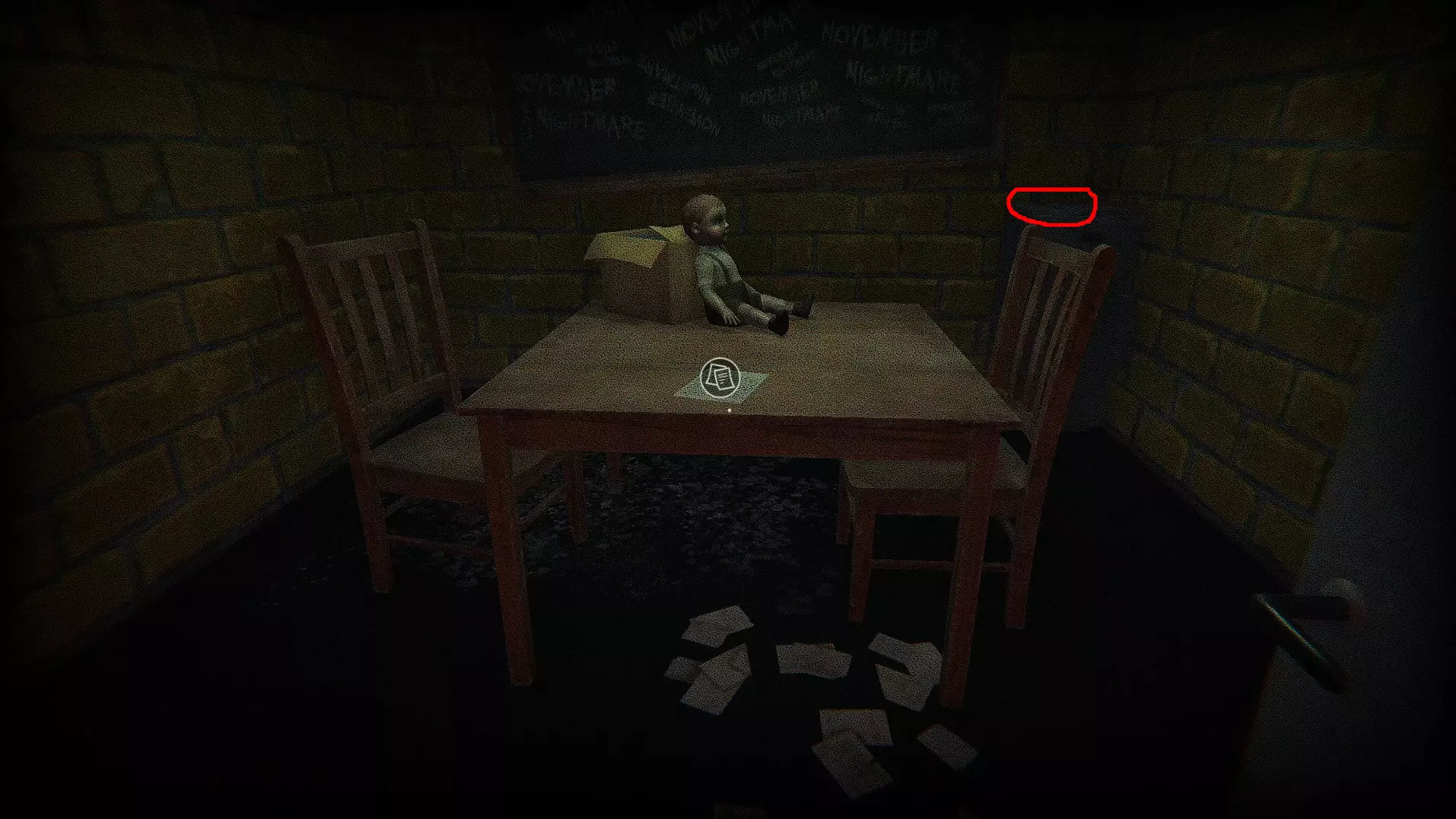 提示2:在那个令人毛骨悚然的玩偶盒旁边的桌子上。