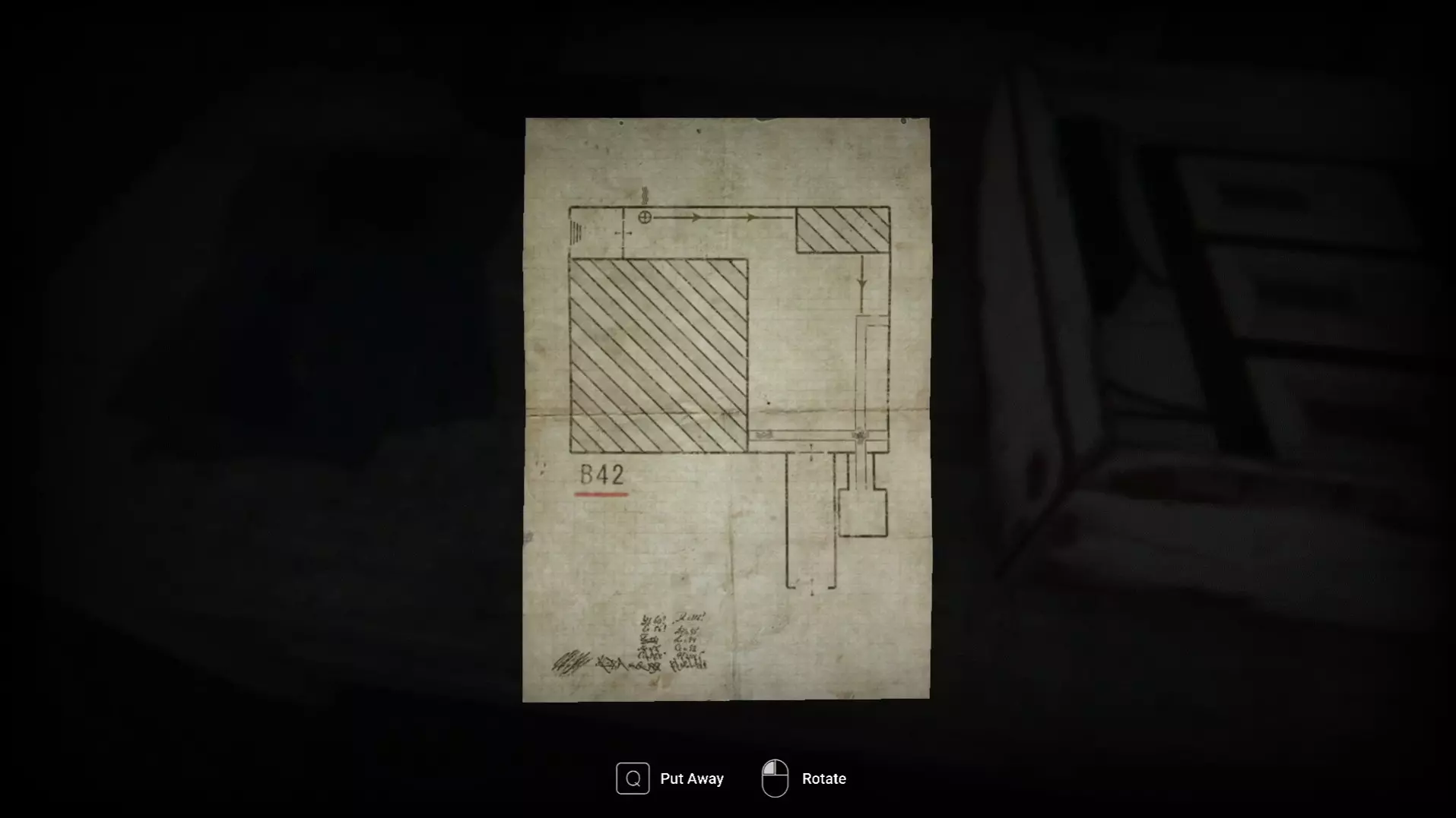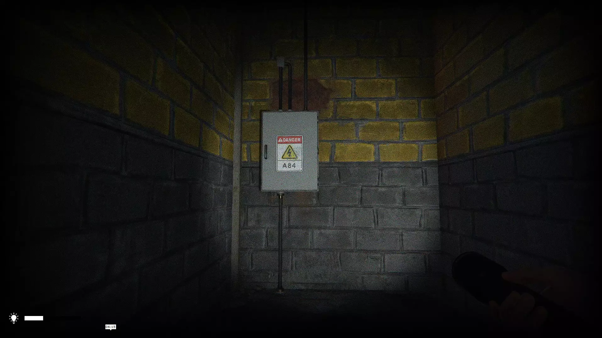 这里可以找到视频时间戳。 钥匙(打开地下室门) 有一个四位数密码锁。将电源开关盒上的文字(A84)与之前便条上的文字(B42)按字母顺序组合。