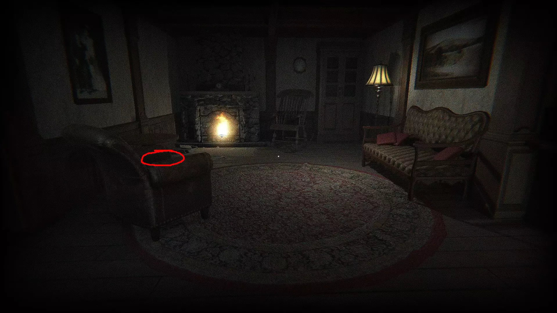 隐藏物品(莎拉的帽子) 在第一个主要谜题和收音机所在的房间里,壁炉对面的扶手椅上。