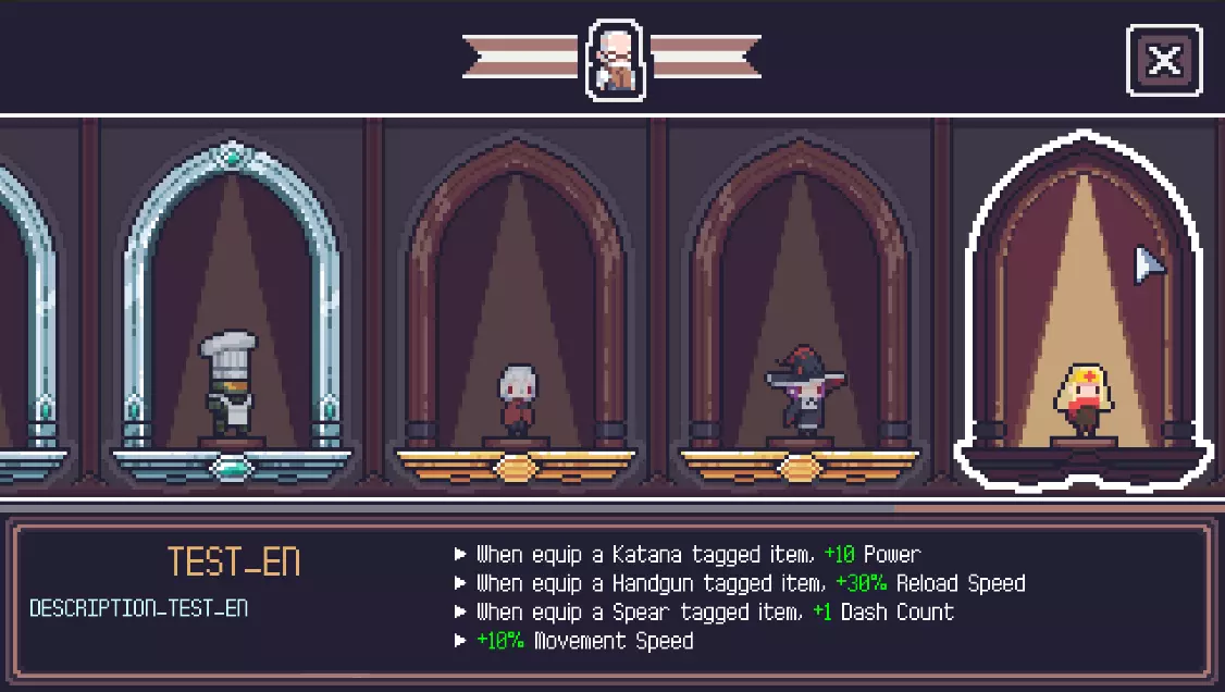 2. 应用服装 将示例服装文件夹放置在以下路径,运行游戏即可自动应用。 * AddOns 文件夹和 Costume 文件夹默认不存在。若路径不存在,请新建文件夹。 Windows:《 dungreed 》安装文件夹 Dungreed_Data AddOns Costumes Mac:《 dungreed 》安装文件夹 Dungreed .app Contents AddOns Costumes Linux:《 dungreed 》安装文件夹 Dungreed_Data AddOns Costumes 在更衣室界面按下 F5 键可刷新当前服装信息。 加载失败时会提供错误消息,以便更轻松地进行服装制作工作。